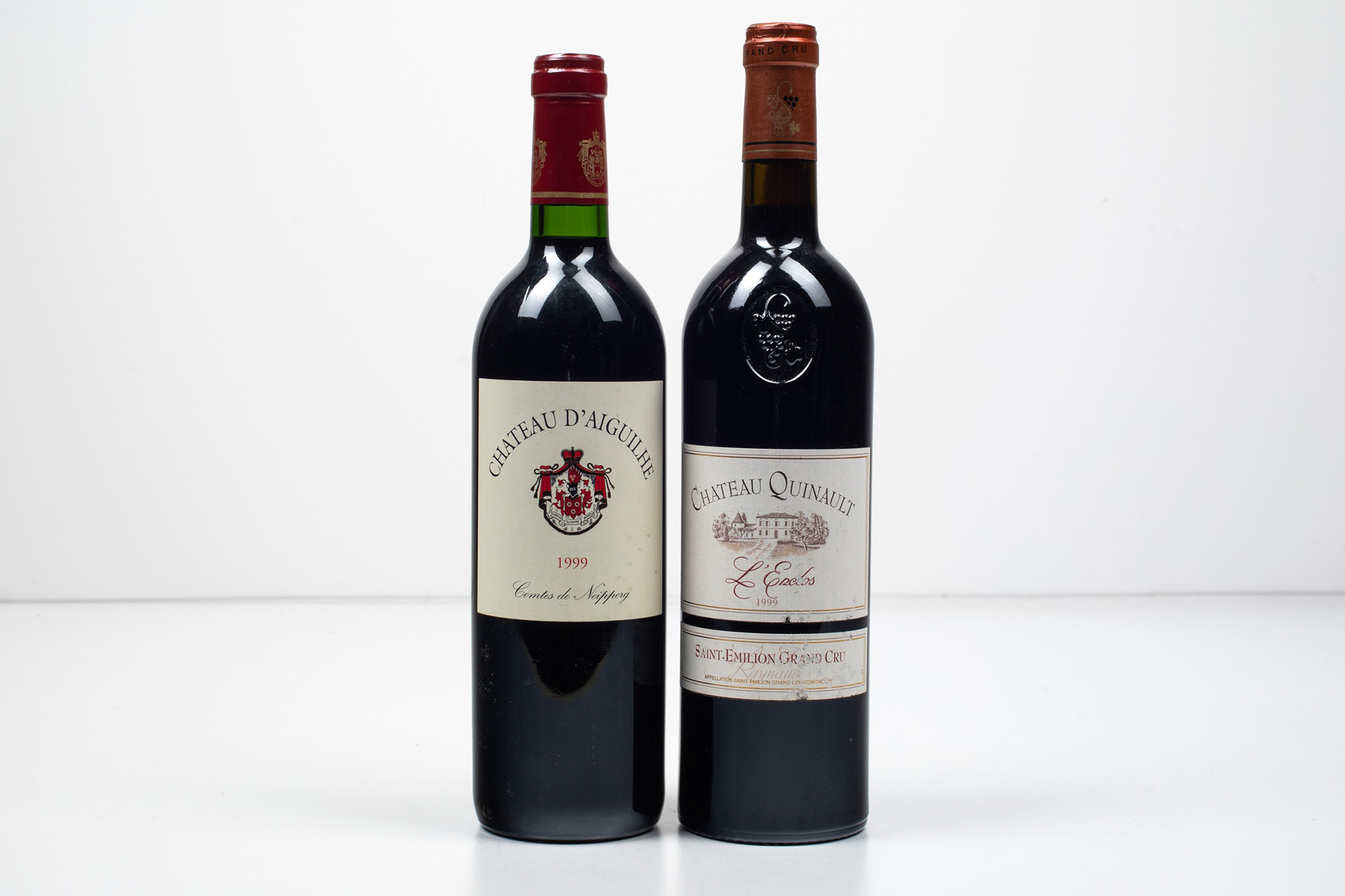 Chateau d'Aiguilhe, Cotes de Castillon Chateau Quinault, Saint Emilion L'Enclos, (2 Bts), Chateau d'Aiguilhe, 1999, 1 Bt BN, Chateau Quinault, 1999, 1 Bt WN, (etichette e capsule con segni d'usura del tempo), Chateau Quinault bottiglia nr. 32179