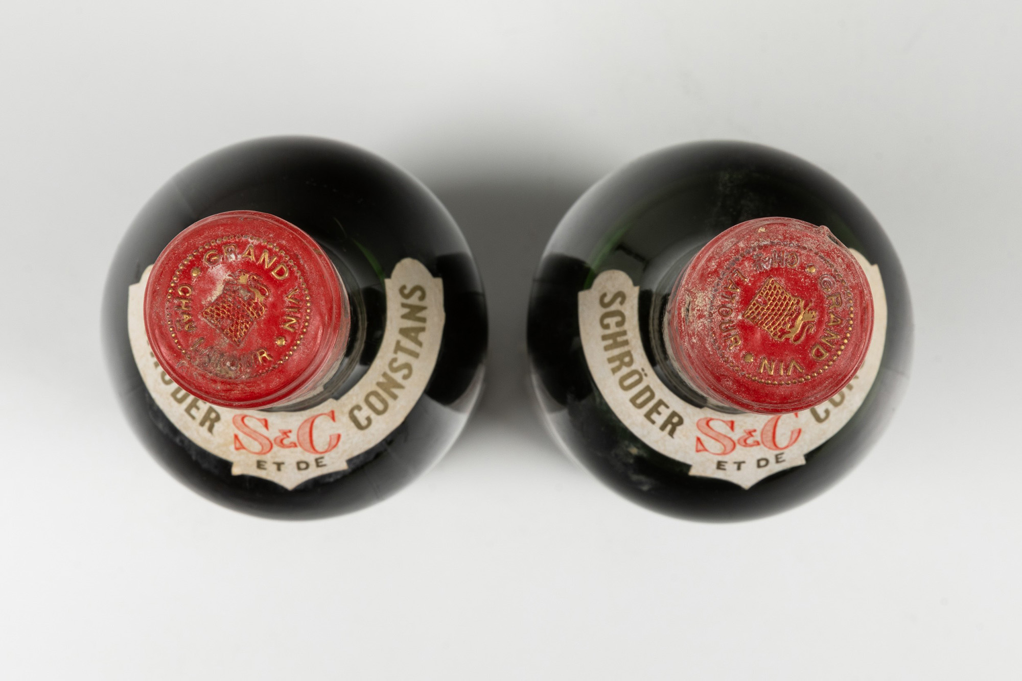 Chateau Latour, Pauillac, (2 Bts), 1963, 1 Bt TS, 1 Bt S, (etichette e capsule con segni d'usura del tempo)