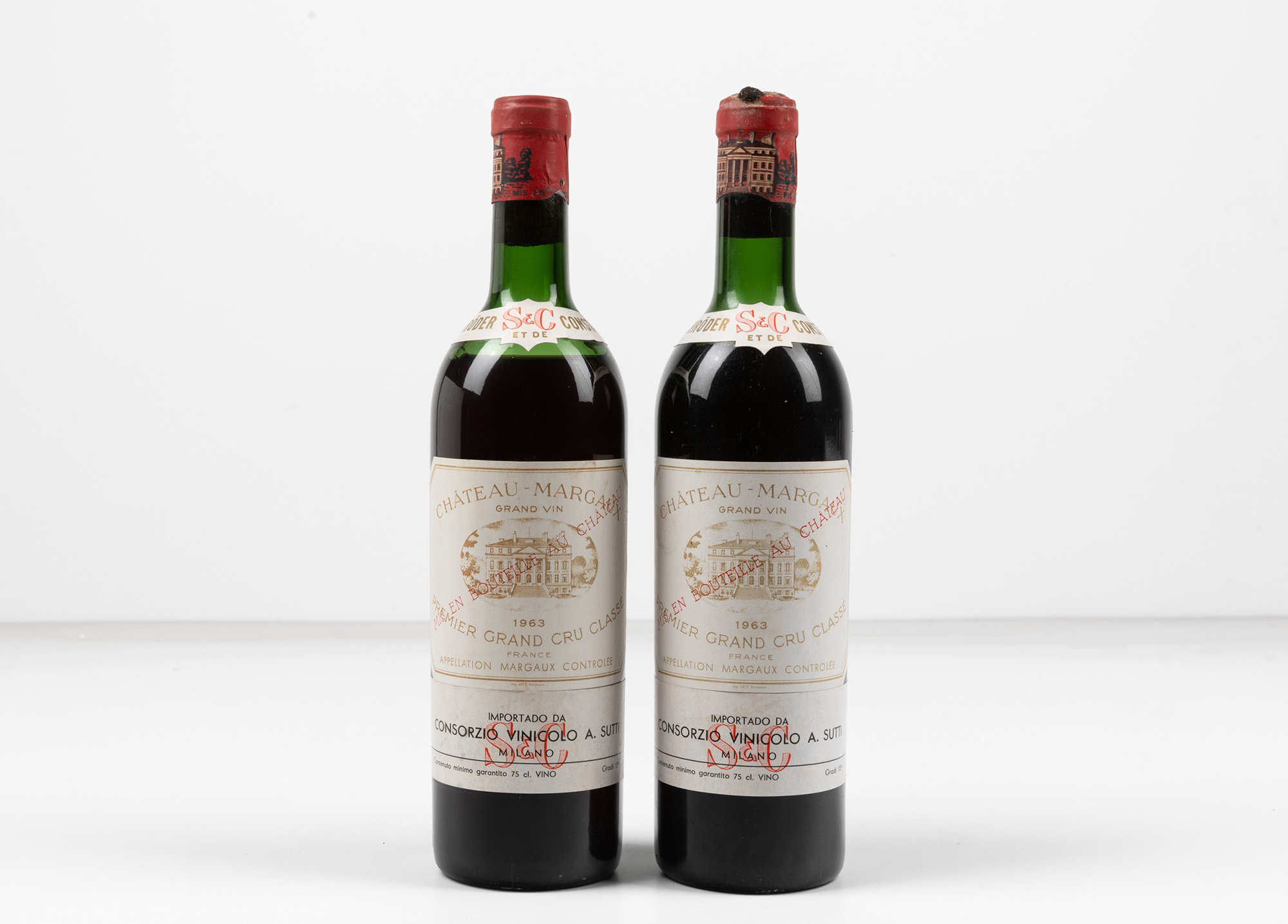 Chateau Margaux, Margaux, (2 Bts), 1963, 1 Bt S, 1 Bt MS, (etichette e capsule con segni d'usura del tempo)