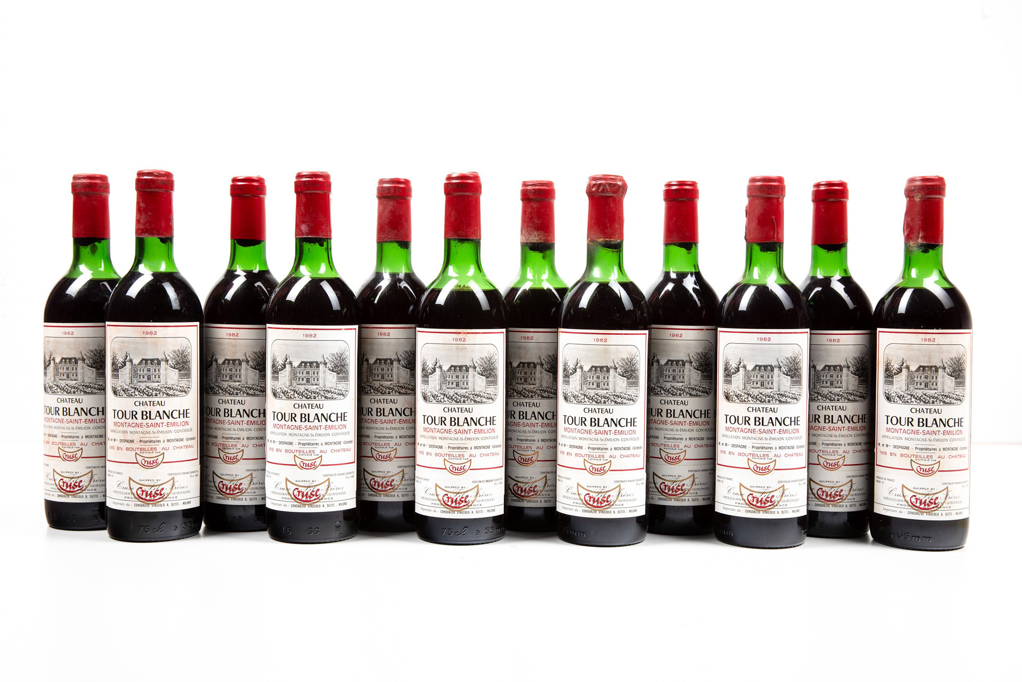 Chateau Tour Blanche, Saint Emilion, (12 Bts), 1982, 8 Bts TS, 4 Bts S, (etichette e capsule con segni d'usura del tempo)