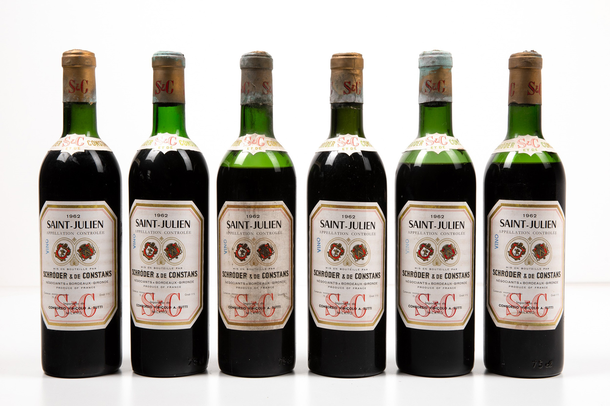 Schroder & de Constans, Saint Julien, (6 Bts), 1962, 3 Bts TS, 3 Bts MS, (etichette e capsule danneggiate)