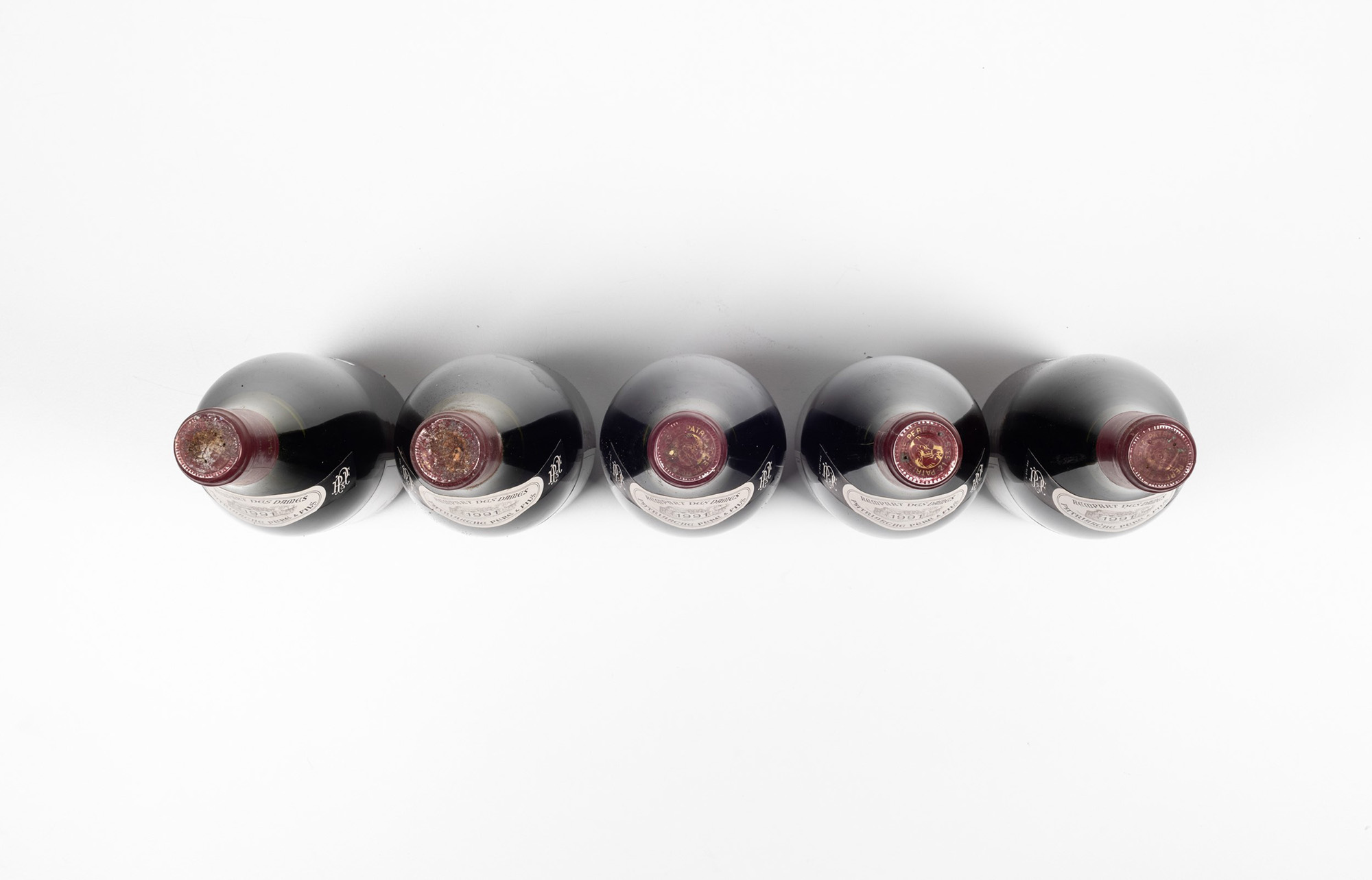 Patriarche, Macon Chaburet, (5 Bts), 1991, 1 Bt WN, 2 Bts BN, 2 Bts S, (etichette e capsule con segni d'usura del tempo), 1 bottiglia di colore chiaro