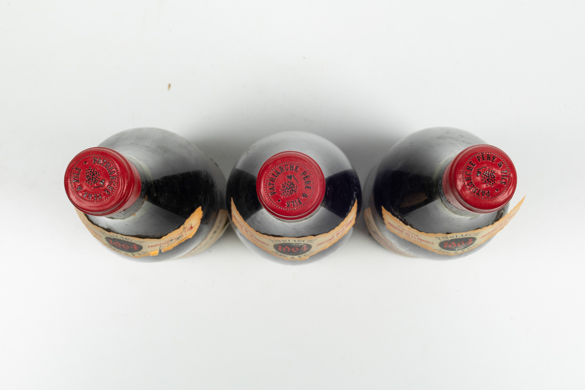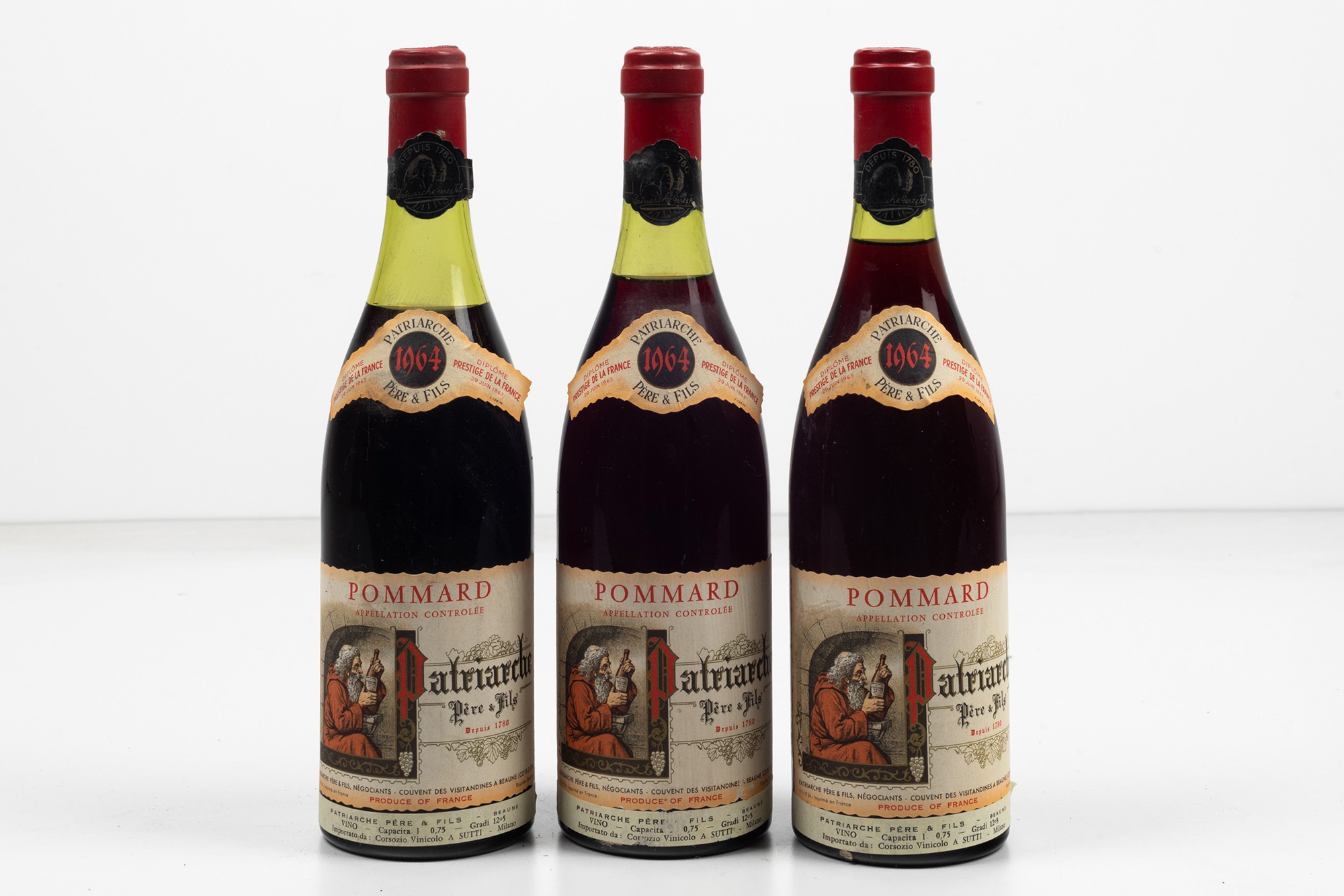 Patriarche, Pommard, (3 Bts), 1964, 1 Bt WN, 1 Bt BN, 1 Bt TS, (etichette e capsule con segni d'usura del tempo)