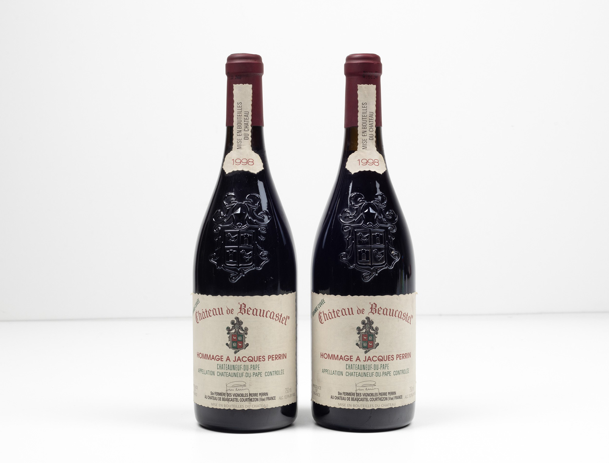 Chateau de Beucastel, Chateauneuf du Pape Hommage a Jacques Perrin Grande Cuvee, (2 Bts), 1998, 2 Bts WN, (etichette e capsule con segni d'usura del tempo), importato da Sarzi Amade'