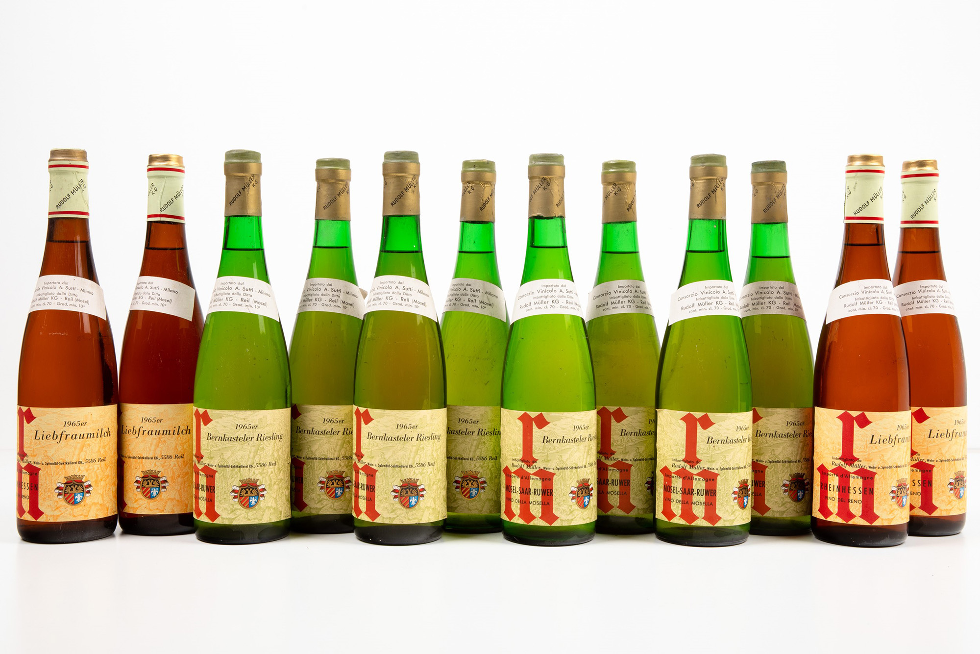Rudolf Muller, Bernkasteler Riesling Rudolf Muller, Liebfraumilch, (12 Bts), 1965, Bernkasteler Riesling, 8 Bts BN, Liebfraumilch, 4 Bts BN, (etichette e capsule con segni d'usura del tempo)