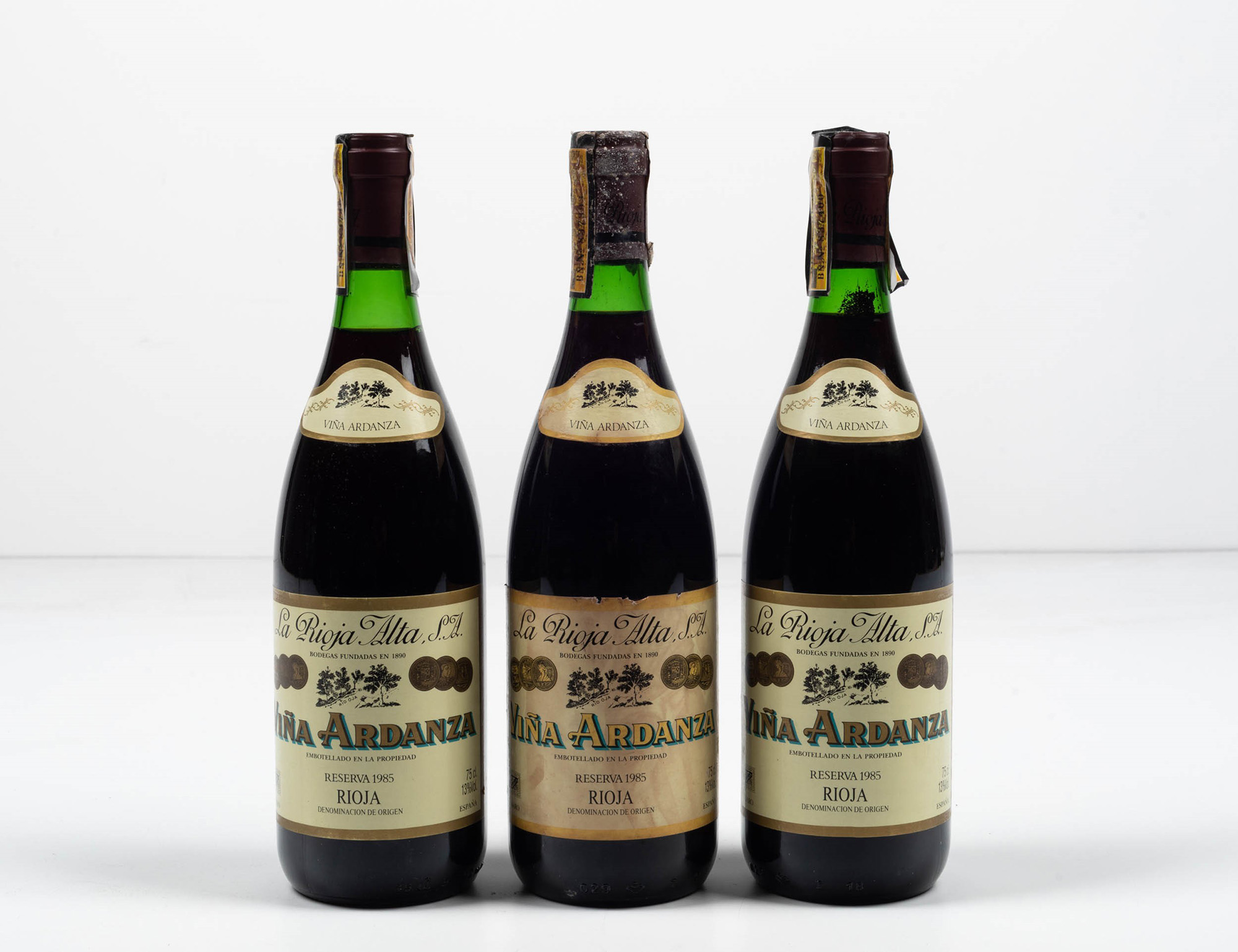 La Rioja Alta, Rioja Vina Ardanza, (3 Bts), 1985, 2 Bts WN, 1 Bt BN, (etichette macchiate e capsule danneggiate)