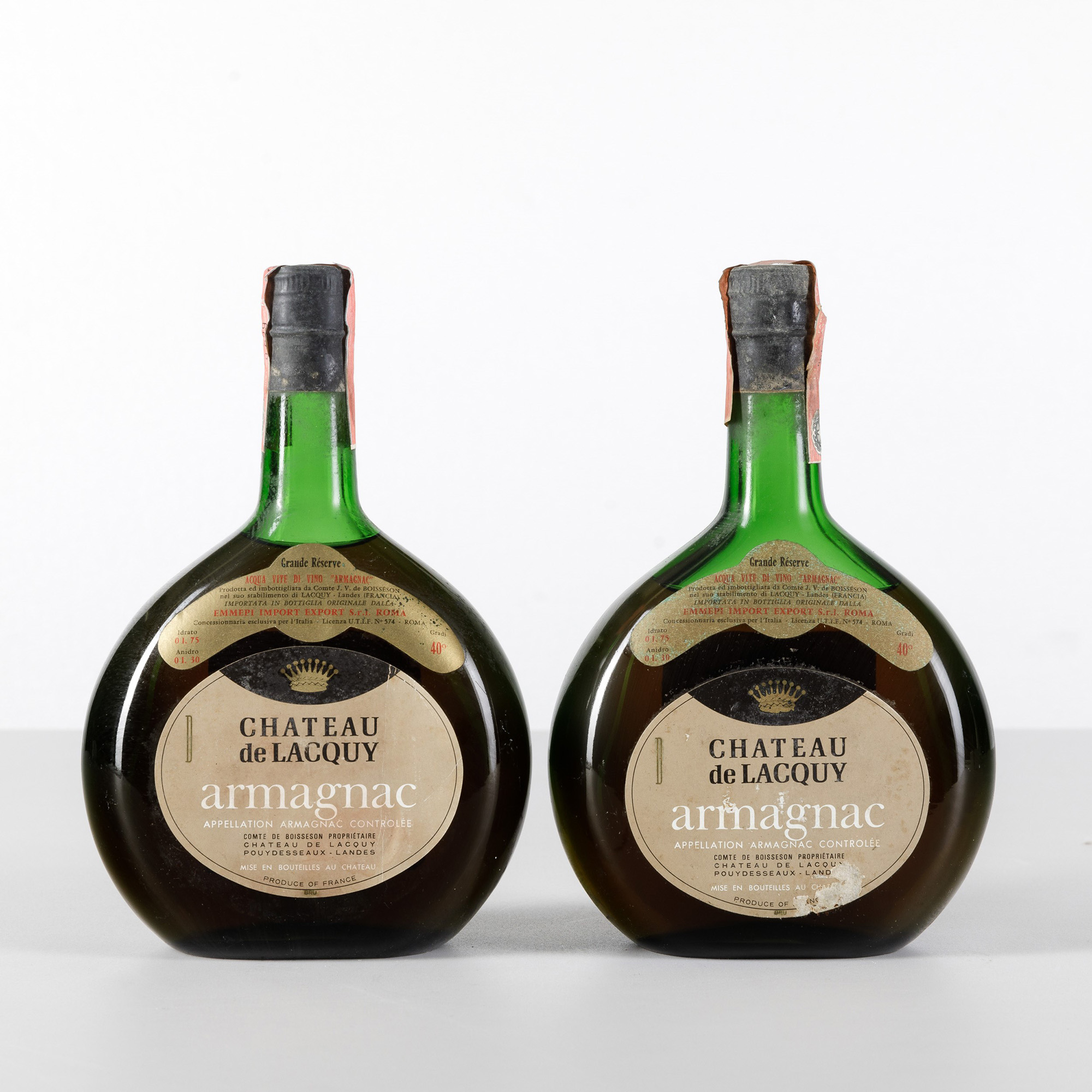 Chateau de Lacquy, Armagnac, (2 Bts) , 40%, 1 Bt TS, 1 Bt S, , (etichette e capsule con segni d'usura del tempo e di umidità), imbottigliato da Comte J.V. de Boisseson, importato da Emmepi Import Export