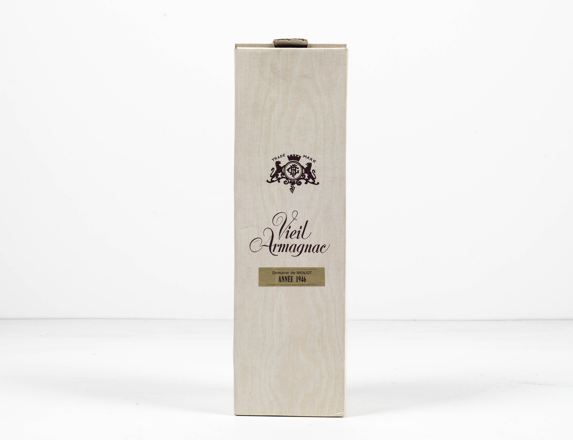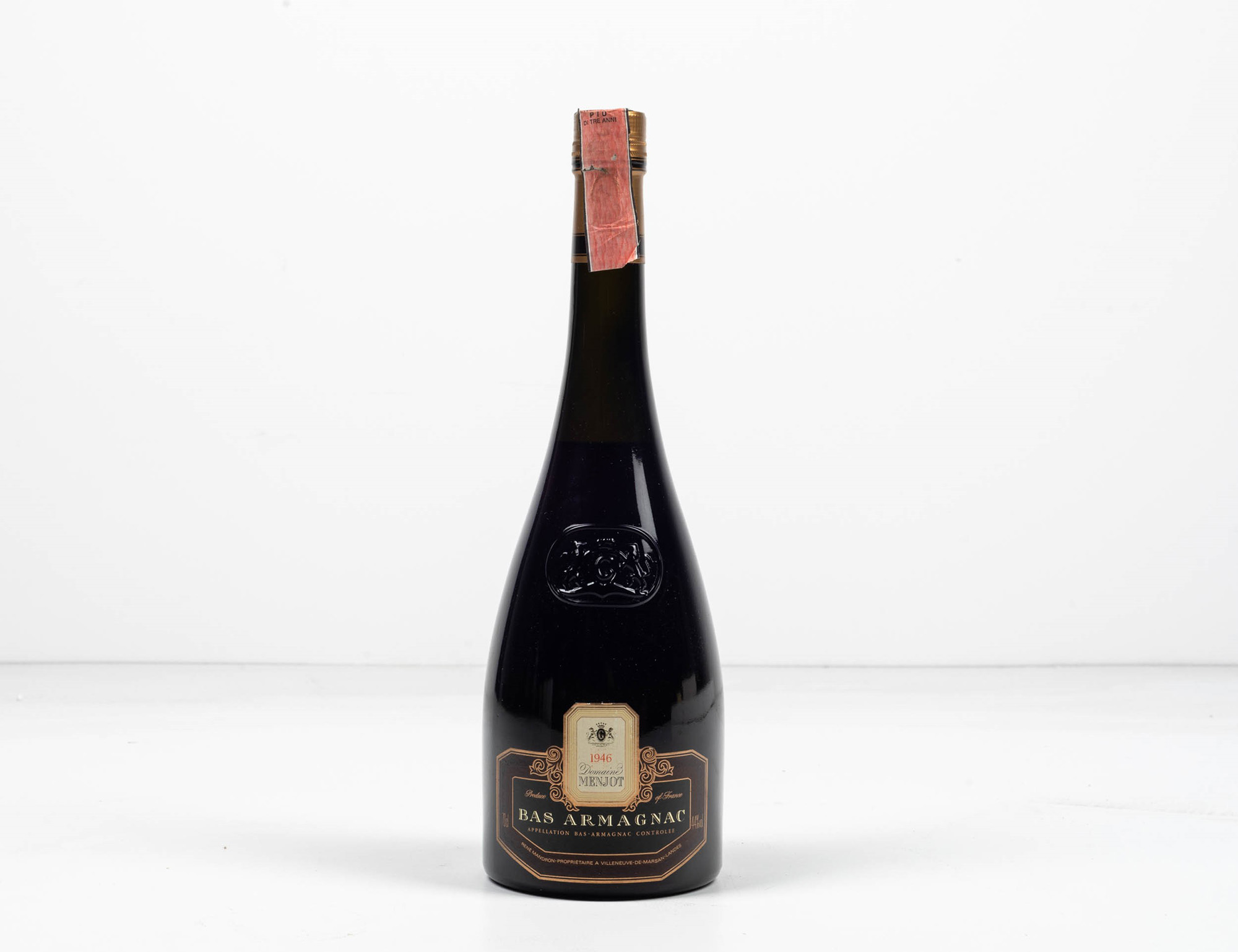 Domaine Menjot, Bas Armagnac, (1 Bt 70cl), 1946, 44%, 1 Bt TS, OC, (etichetta e capsula con segni d'usura del tempo), distillato nel 1946 e imbottigliato nel 1987