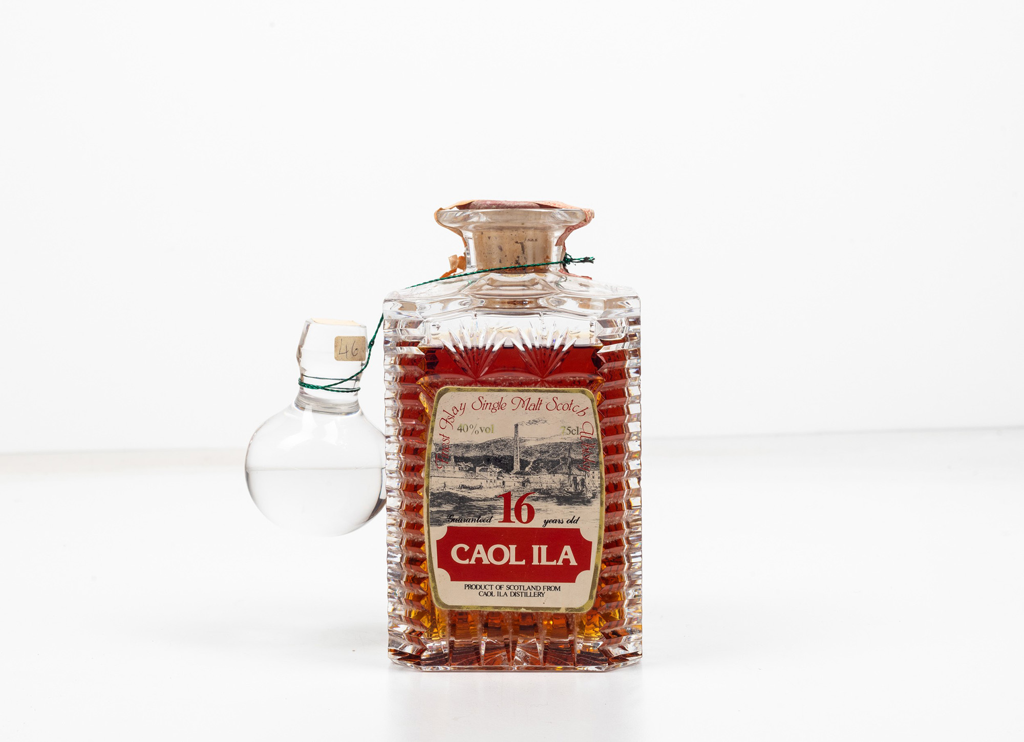 Caol Ila Distillery, Finest Islay Single Malt Scotch Whisky 16 years old Decanter, (1 Bt), 40%, 1 Bt MS, , (etichetta e capsula con segni d'usura del tempo. Possibili perdite durante il trasporto), in decanter, importato da Sestante