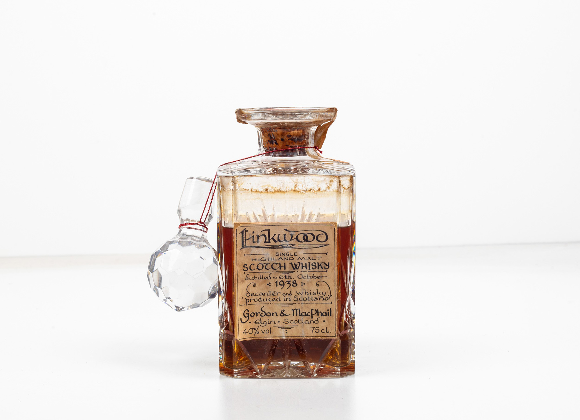 Linkwood, Gordon & Macphail, Single Highland Malt Scotch Whisky Decanter, (1 Bt), 1938, 40%, 1 Bt BS, (etichetta e capsula con segni d'usura del tempo. Possibili perdite durante il trasporto), distillato il 06/10/1938, in decanter