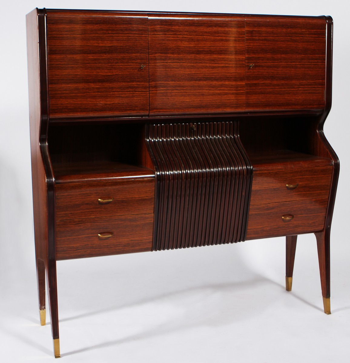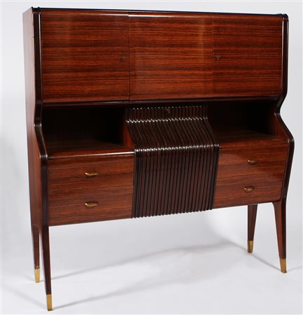 BORSANI OSVALDO (1911 - 1985) Mobile da soggiorno. Legno di palissandro. Cm 138,00 x 148,00 x 44,00. Anni '50. Bibliografia:R. Aloi, l’arredamento moderno, hoepli 1952, fig. 546.