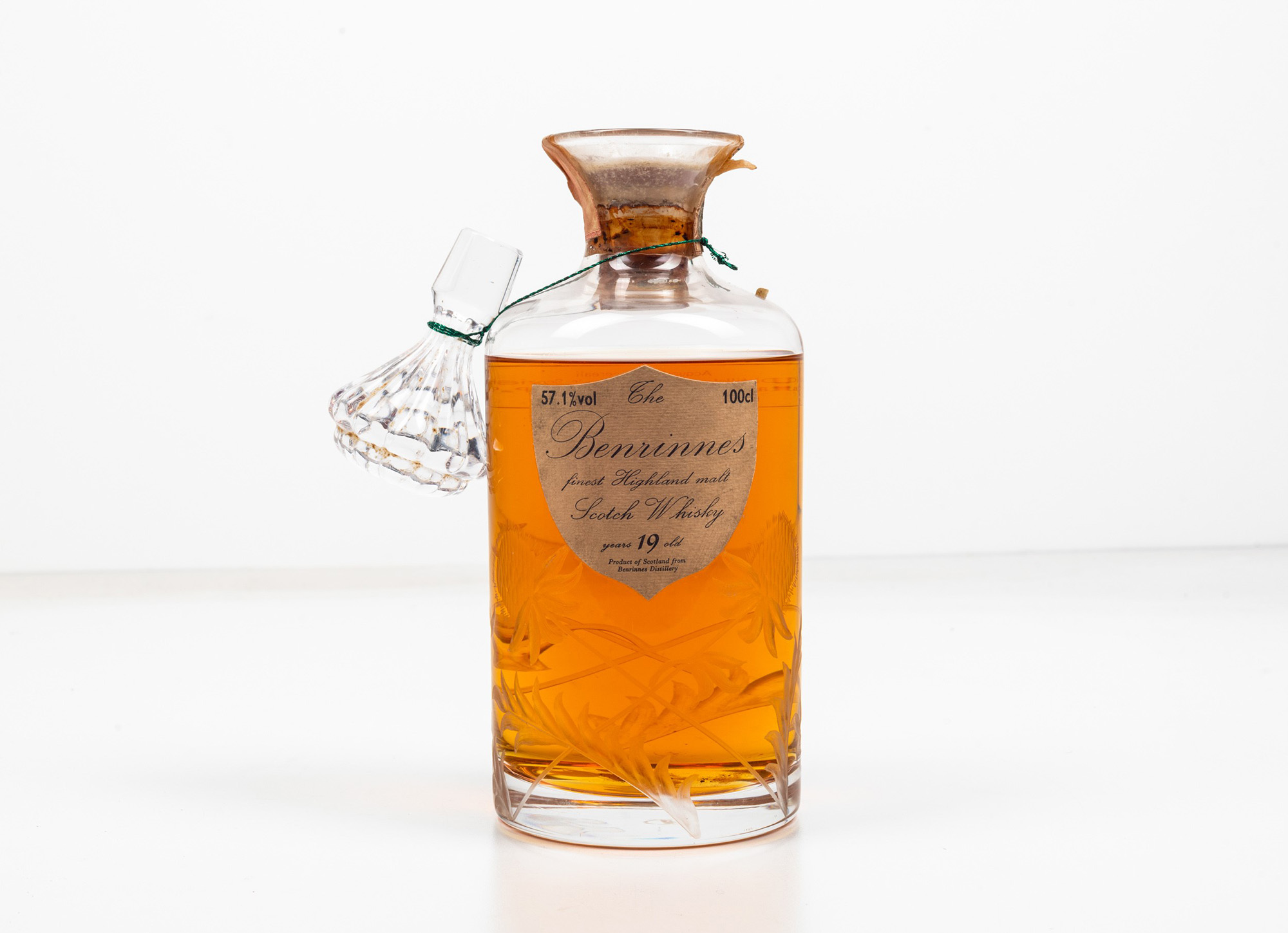 The Benrinnes, Finest Highland Malt Scotch Whisky 19 years old Decanter, (1 Bt 1L), 57,1%, 1 Bt MS, (etichetta, capsula e tappo con segni d'usura del tempo. Possibili perdite durante il trasporto), in decanter, importato da Sestante,