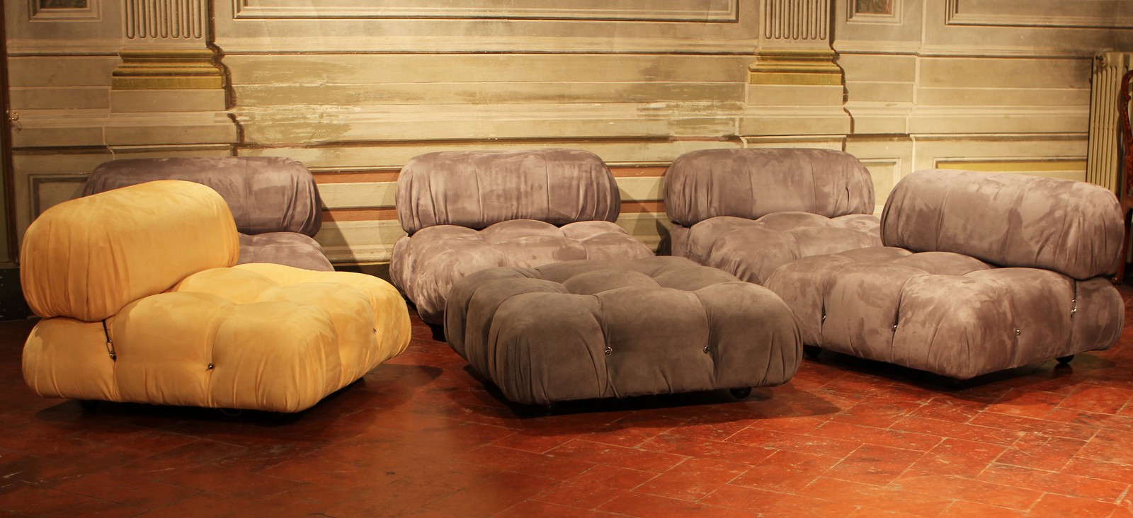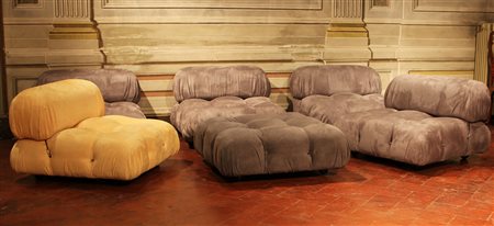 BELLINI MARIO (n. 1935) Cinque poltrone Camaleonda e un puff. Metallo e tessuto. . Misure poltrone: 65x90x90cm; misure puf: 30x90x90cm. Certificato di autenticità Camaleonda B&B Italia firmato da Mario Bellini.