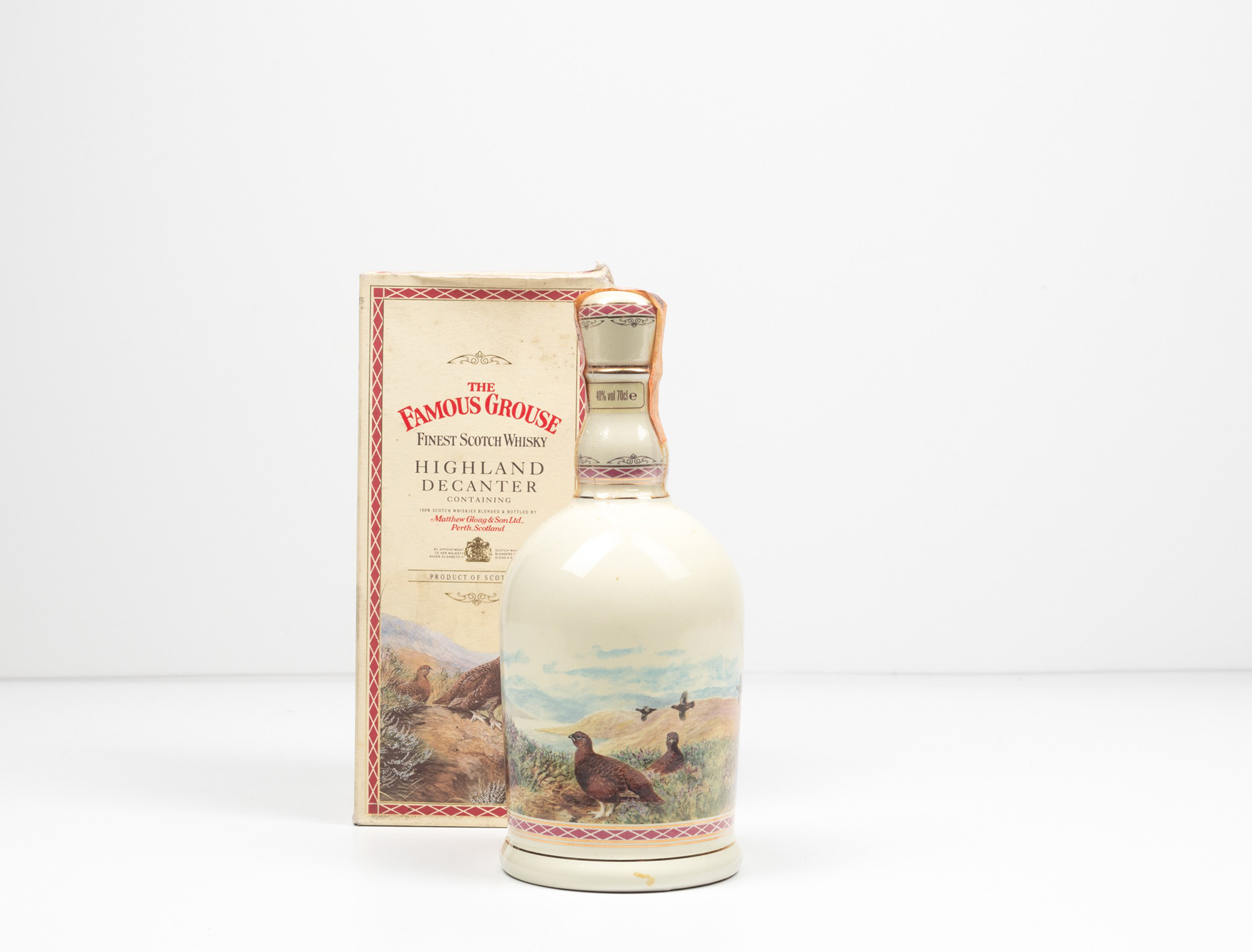 Matthew Gloag & Son, The Famous Grouse Finest Scotch Whisky Highland Decanter, (1 Bt 70cl), 40%, OC, (bottiglia e scatola con segni d'usura del tempo), imbottigliato da Matthew Gloag & Son, importato da Remy Italia, ottimo livello
