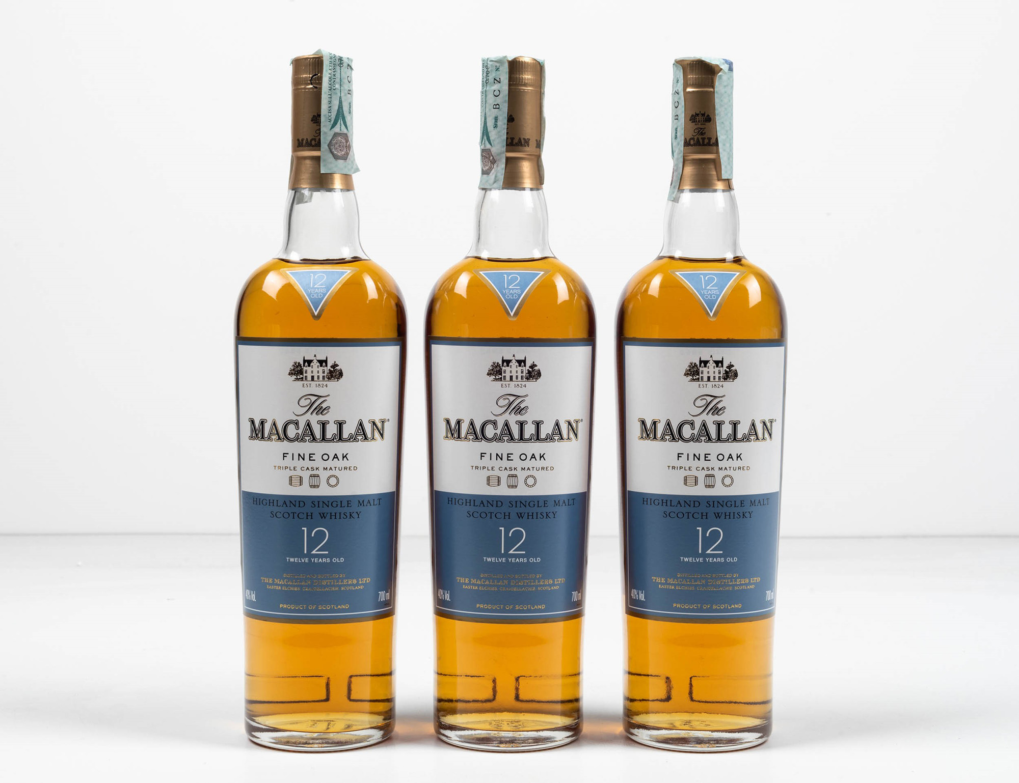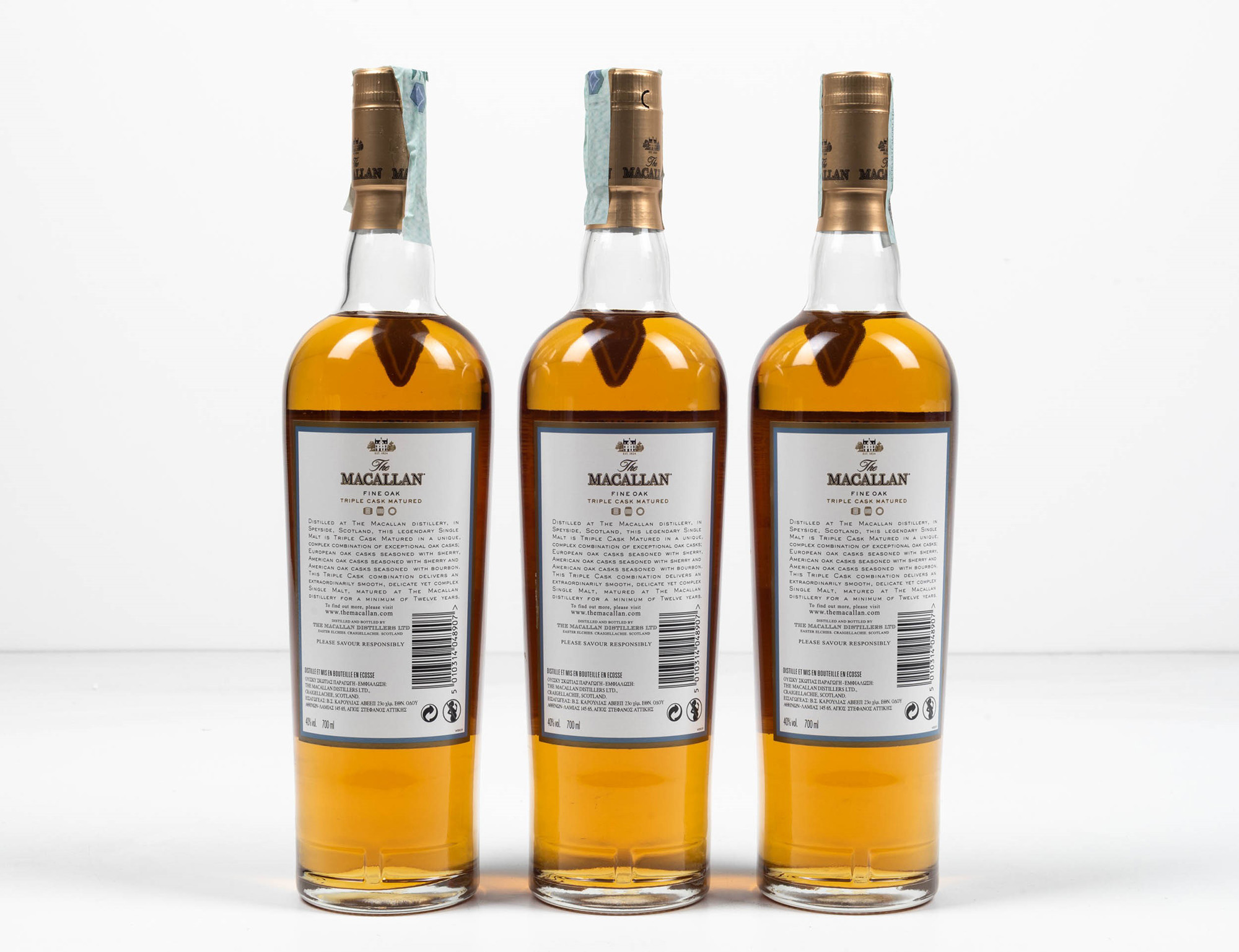 The Macallan, Highland Single Malt Scotch Whisky Fine Oak Triple Cask Matured 12 years old, (3 Bts 70cl), 40%, 3 Bts TS, OC, , (etichette e capsule in ottime condizioni)
