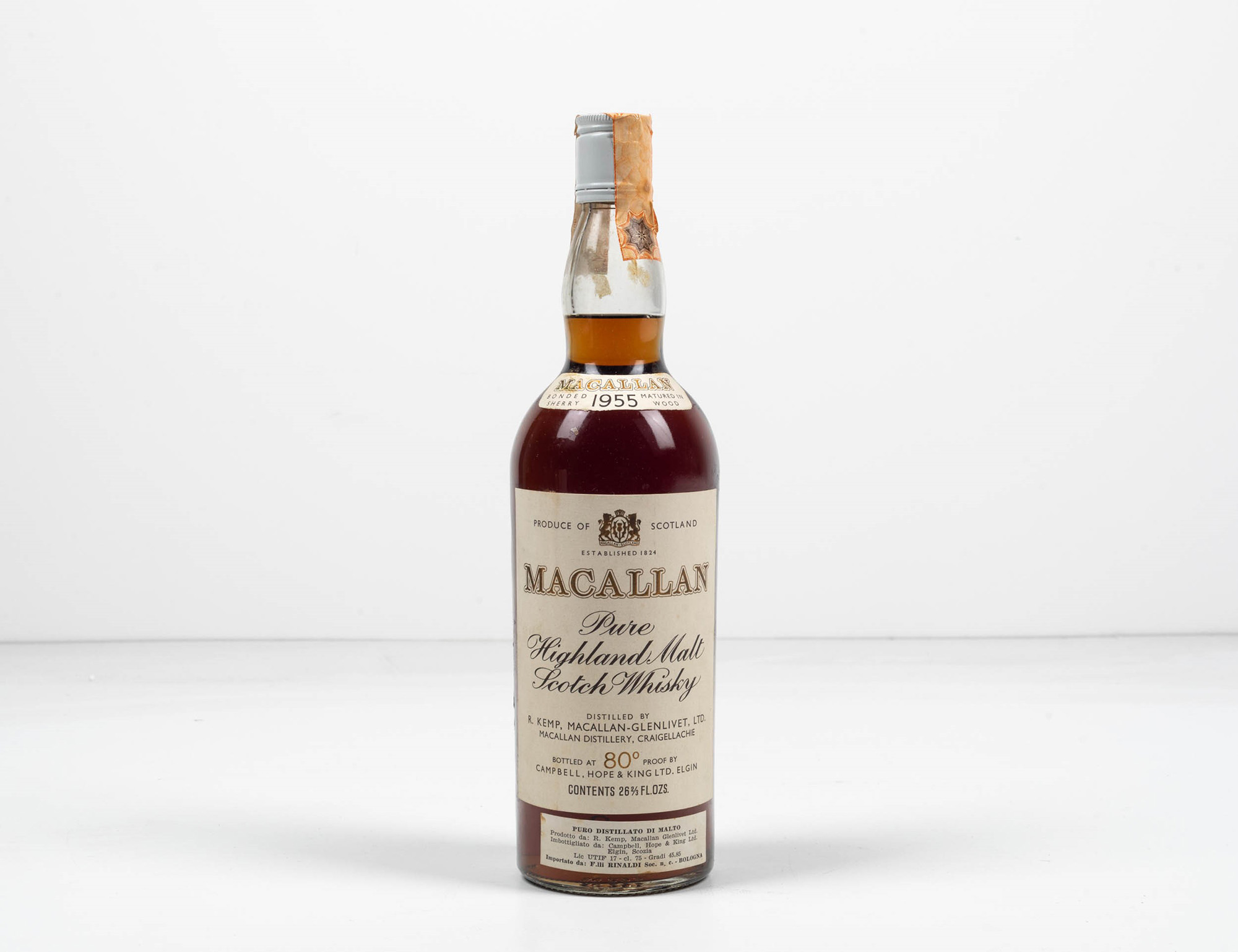 The Macallan, Pure Highland Malt Scotch Whisky, (1 Bt), 1955, 80%, 1 Bt WN, (etichetta e capsula con segni d'usura del tempo), distillato nel 1955, importato da F.lli Rinaldi