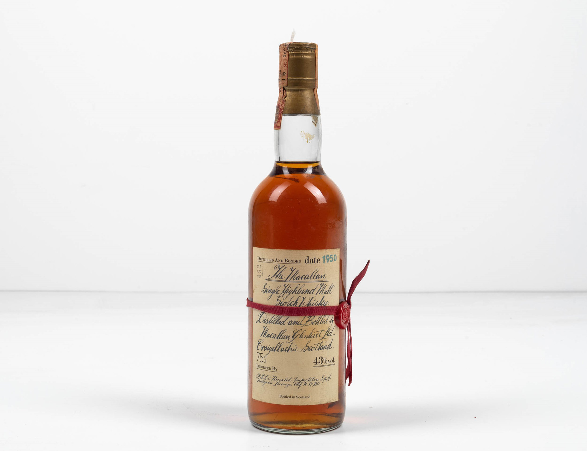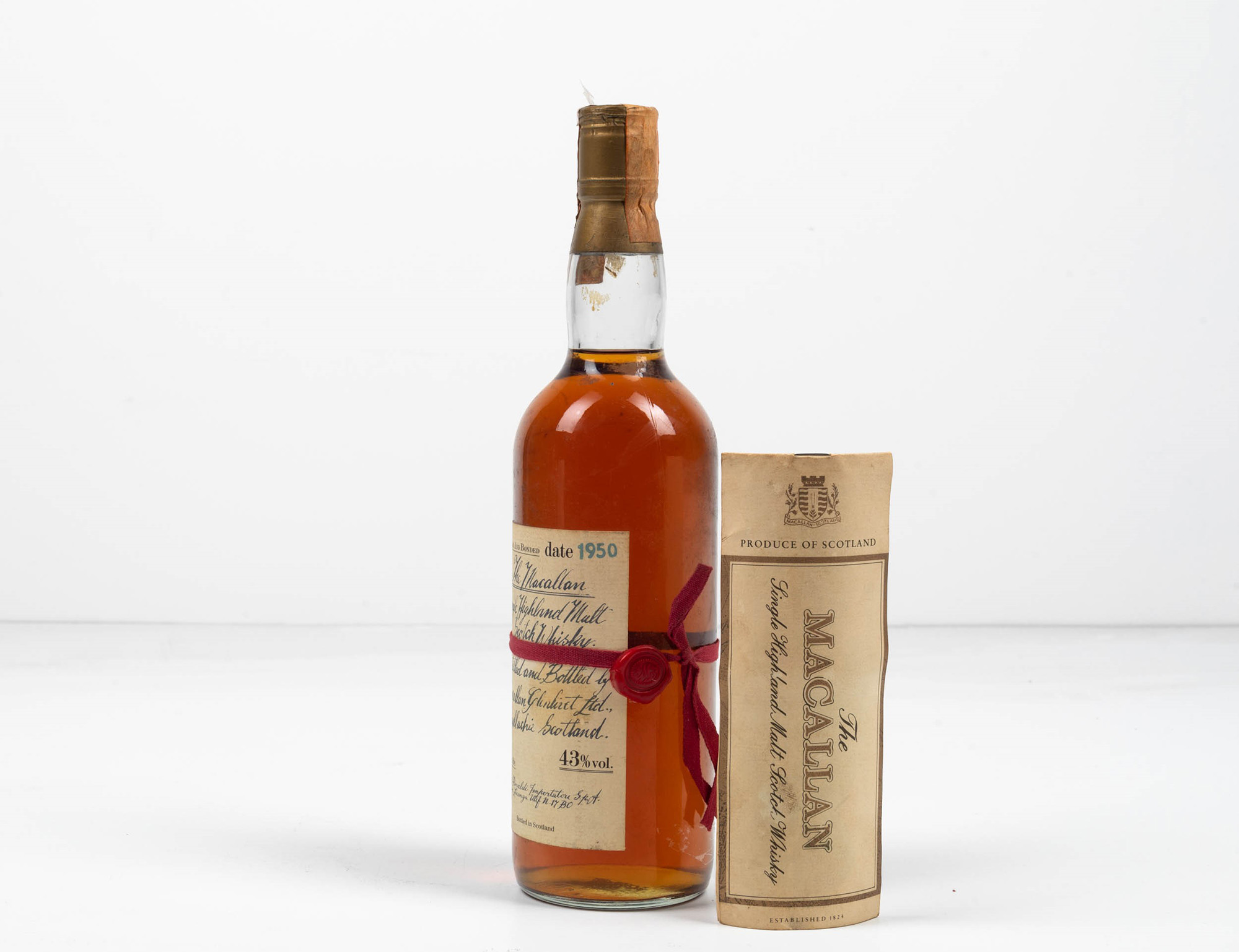 The Macallan, Single Highland Malt Scotch Whisky, (1 Bt), 1950, 43%, 1 Bt BN, , (etichetta e capsula con segni d'usura del tempo), distillato nel 1950, importato da F.lli Rinaldi