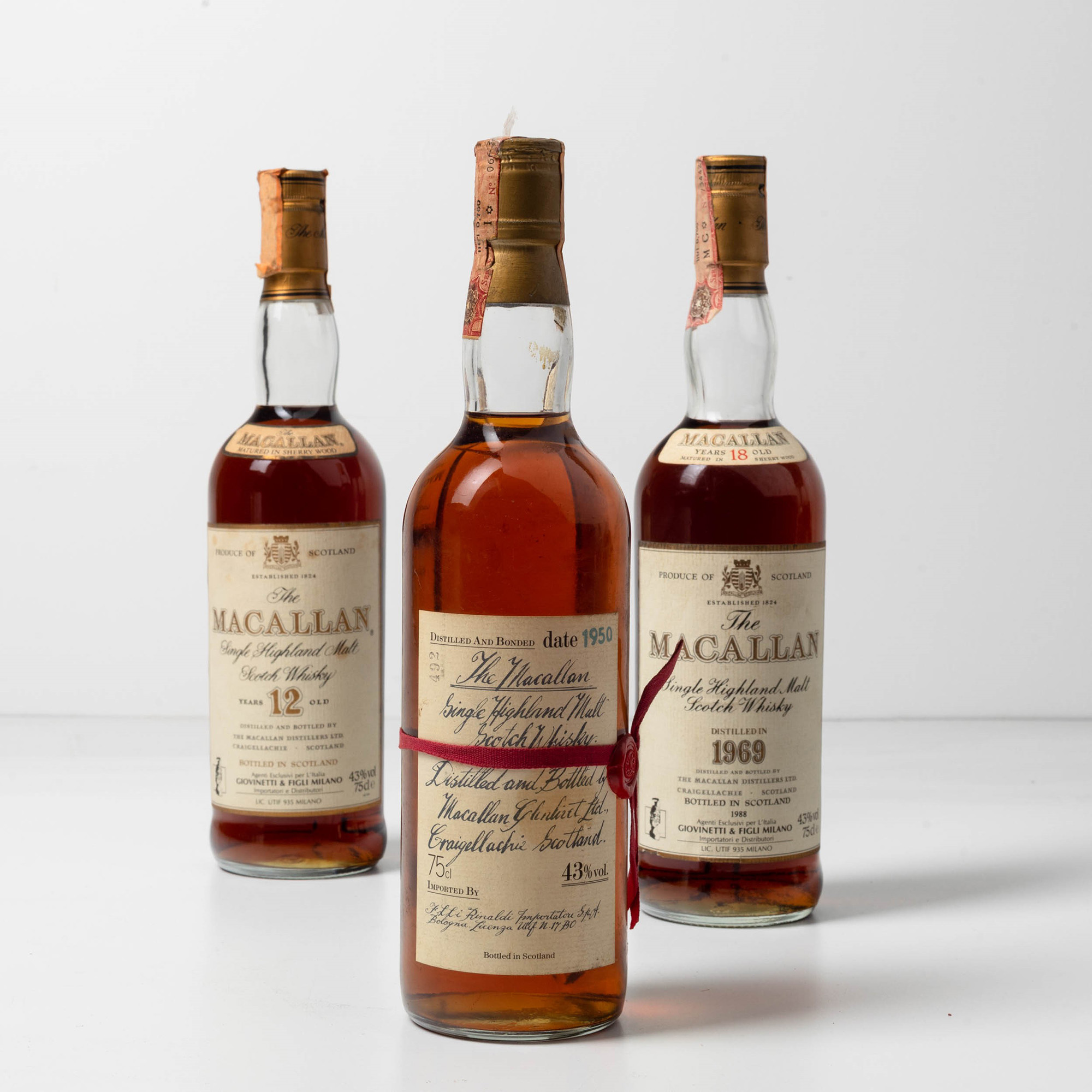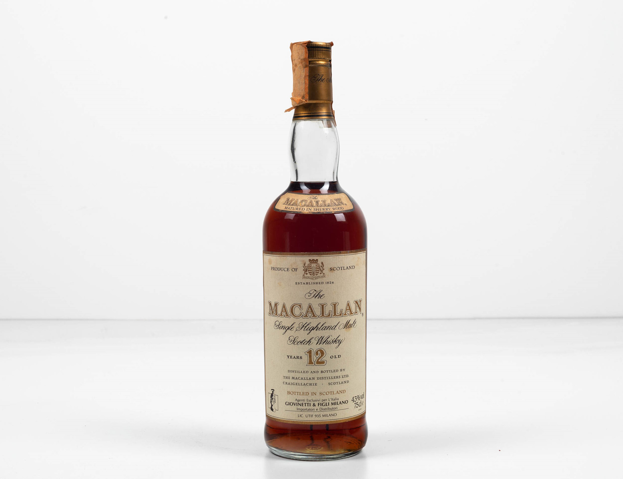 The Macallan, Single Highland Malt Scotch Whisky 12 years old, (1 Bt), 43%, 1 Bt TS, (etichetta e capsula con segni d'usura del tempo), importato da Giovinetti & Figli Milano