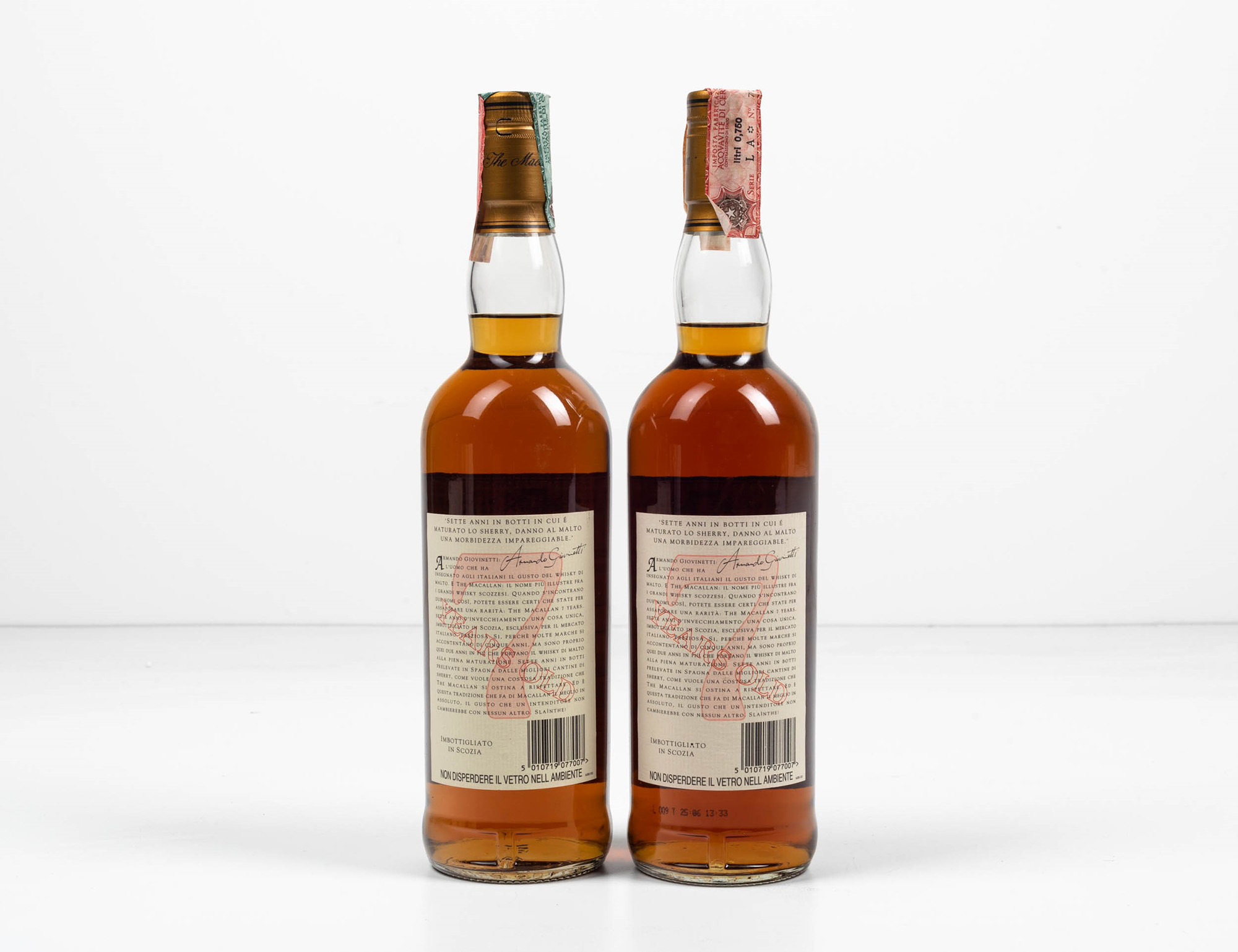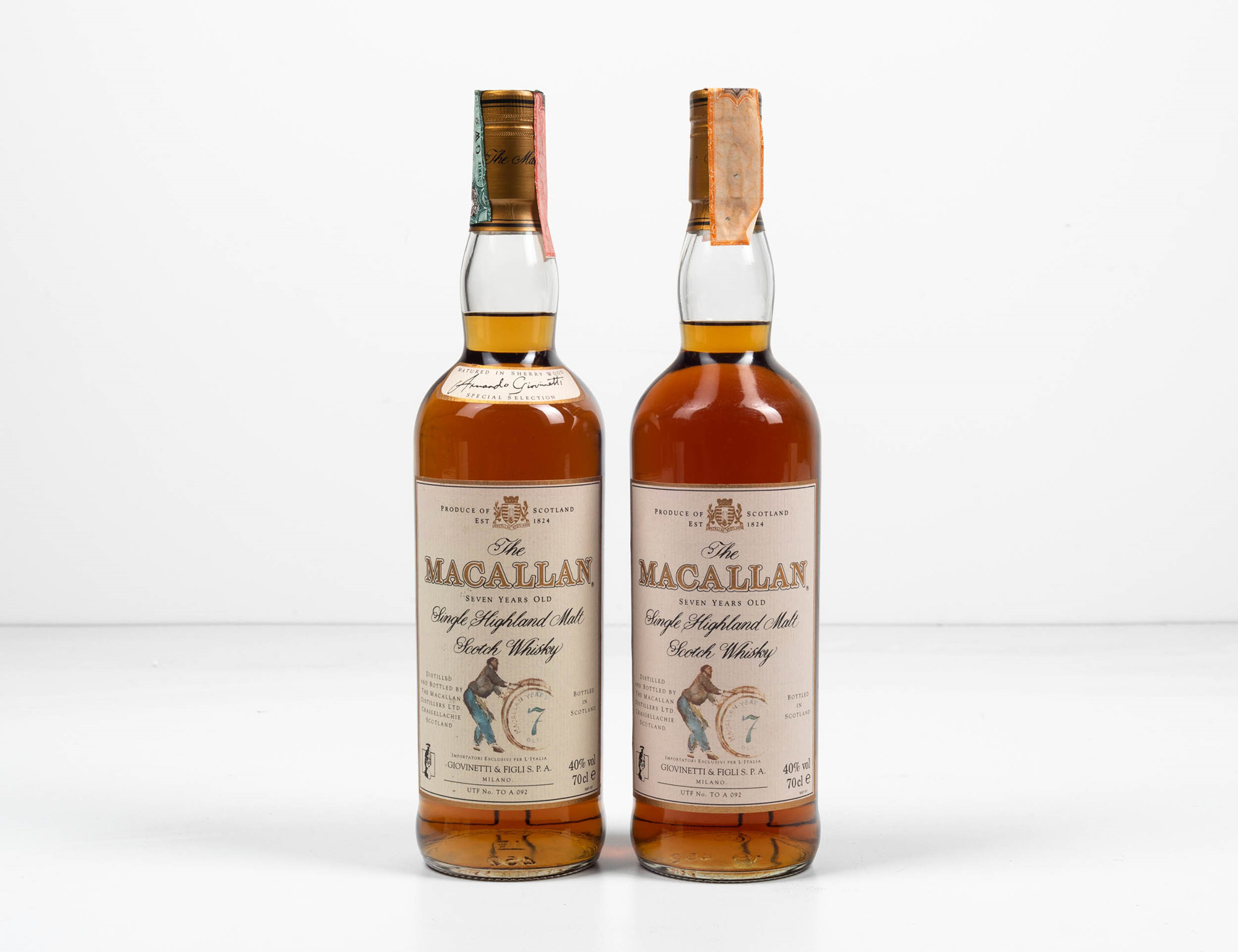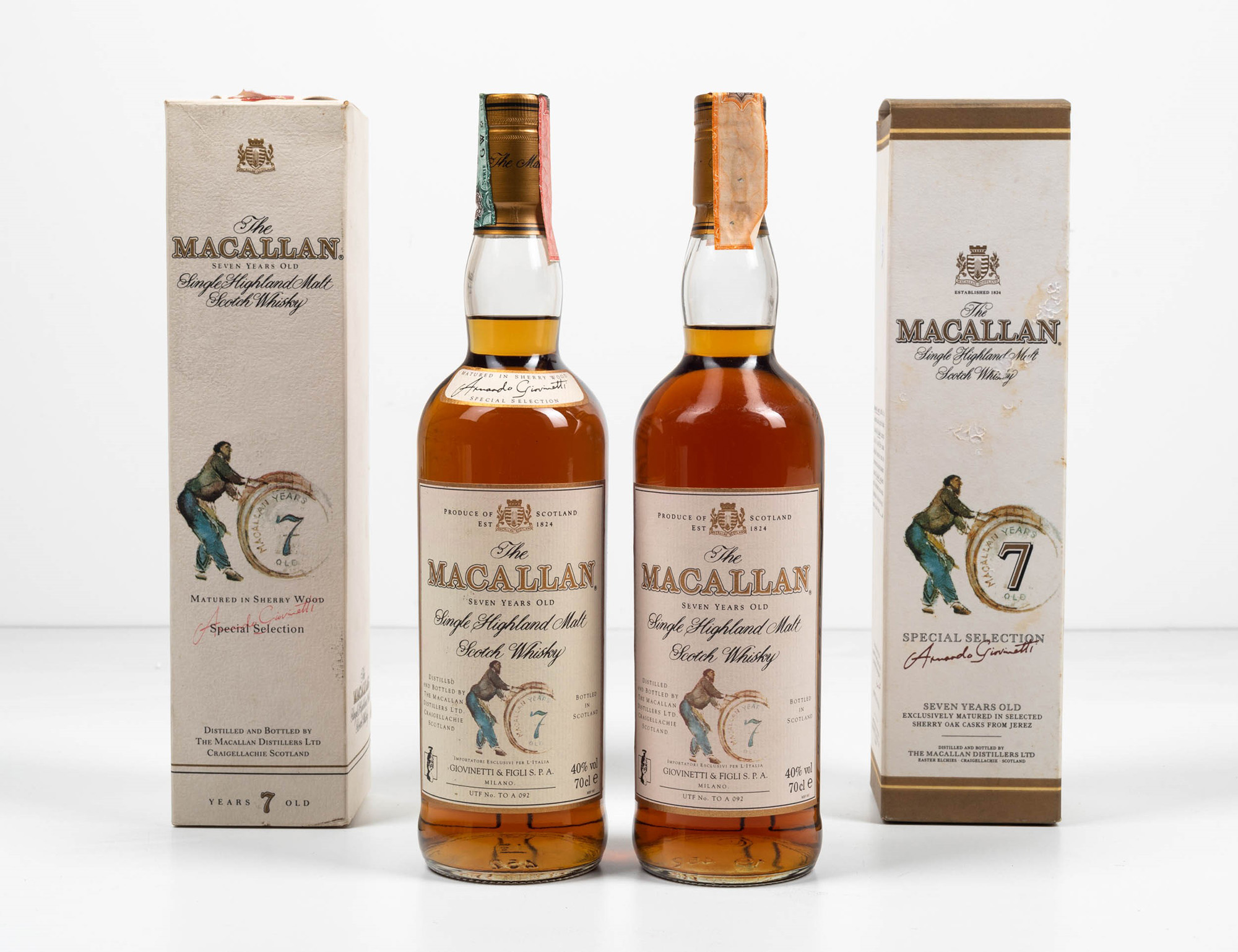 The Macallan, Single Highland Malt Scotch Whisky 7 years old special selection Armando Giovinetti, (2 Bts 70cl), 40%, 2 Bts BN, OC, , (etichette e capsule in ottime condizioni), importato da Giovinetti & Figli Milano