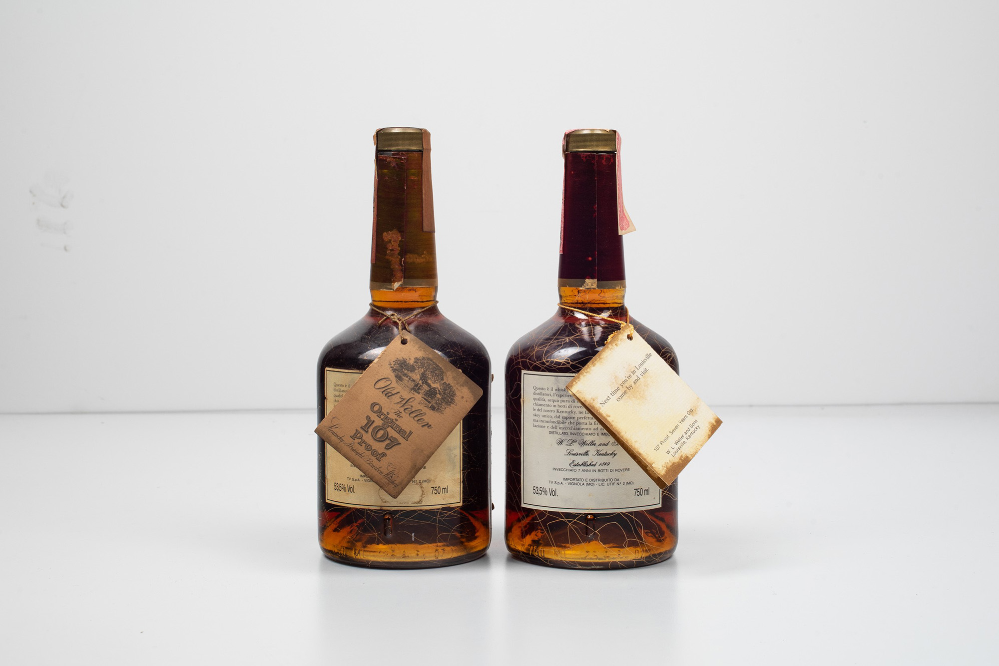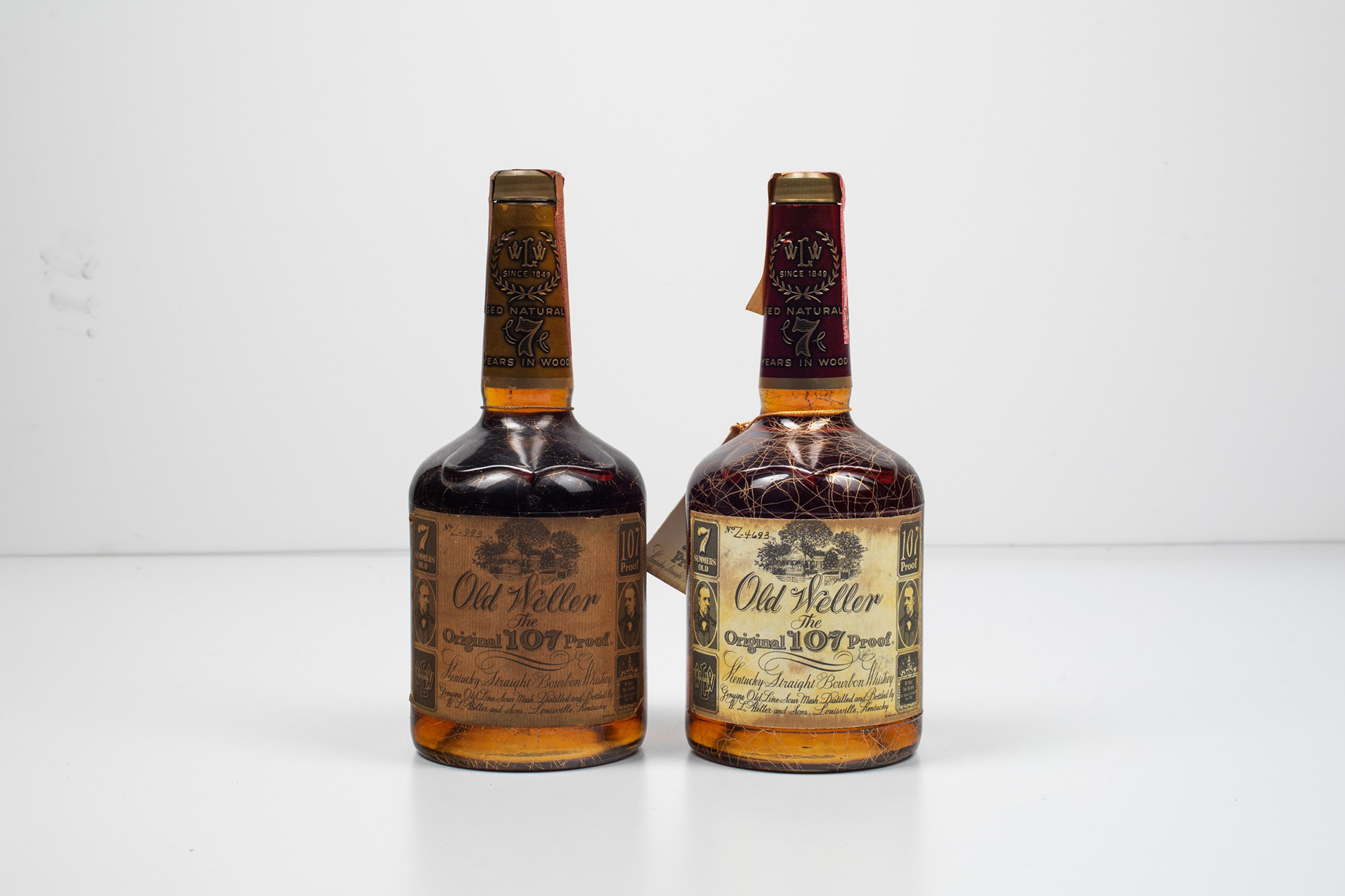 Weller, Kentucky Straight Bourbon Whisky Old Weller Original 107 proof, (2 Bts), 1986, 53,5%, 2 Bts TS, (etichette e capsule danneggiate), distillato nel 1986, bottiglie nr. Z-993 e Z-4693