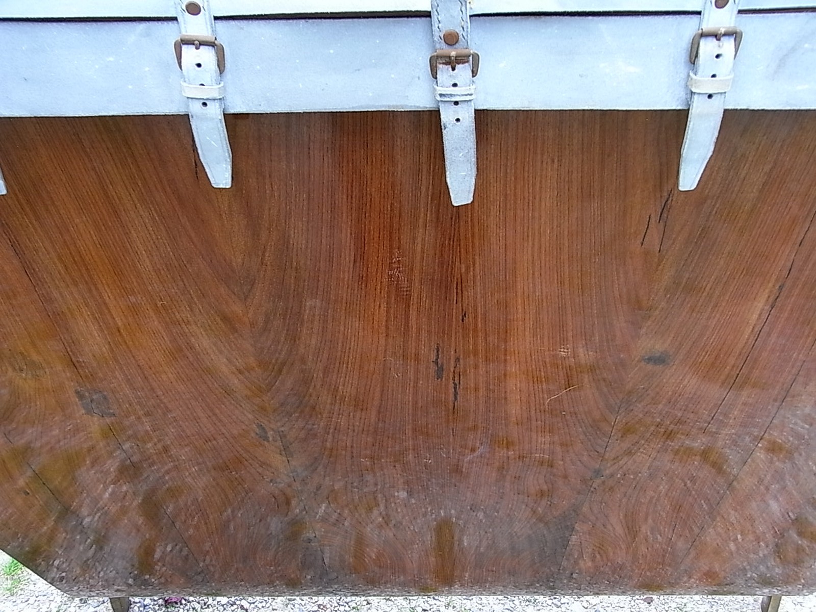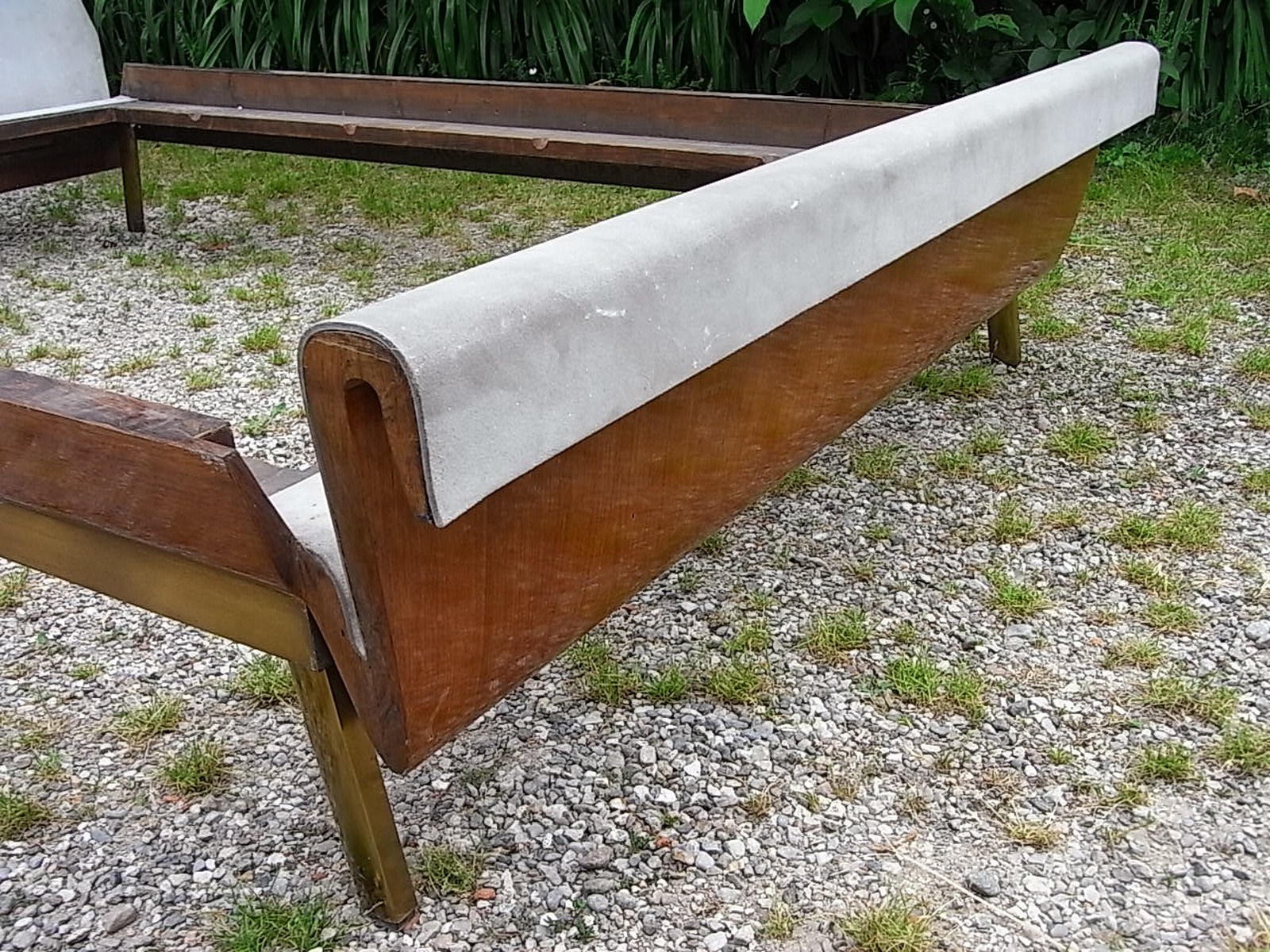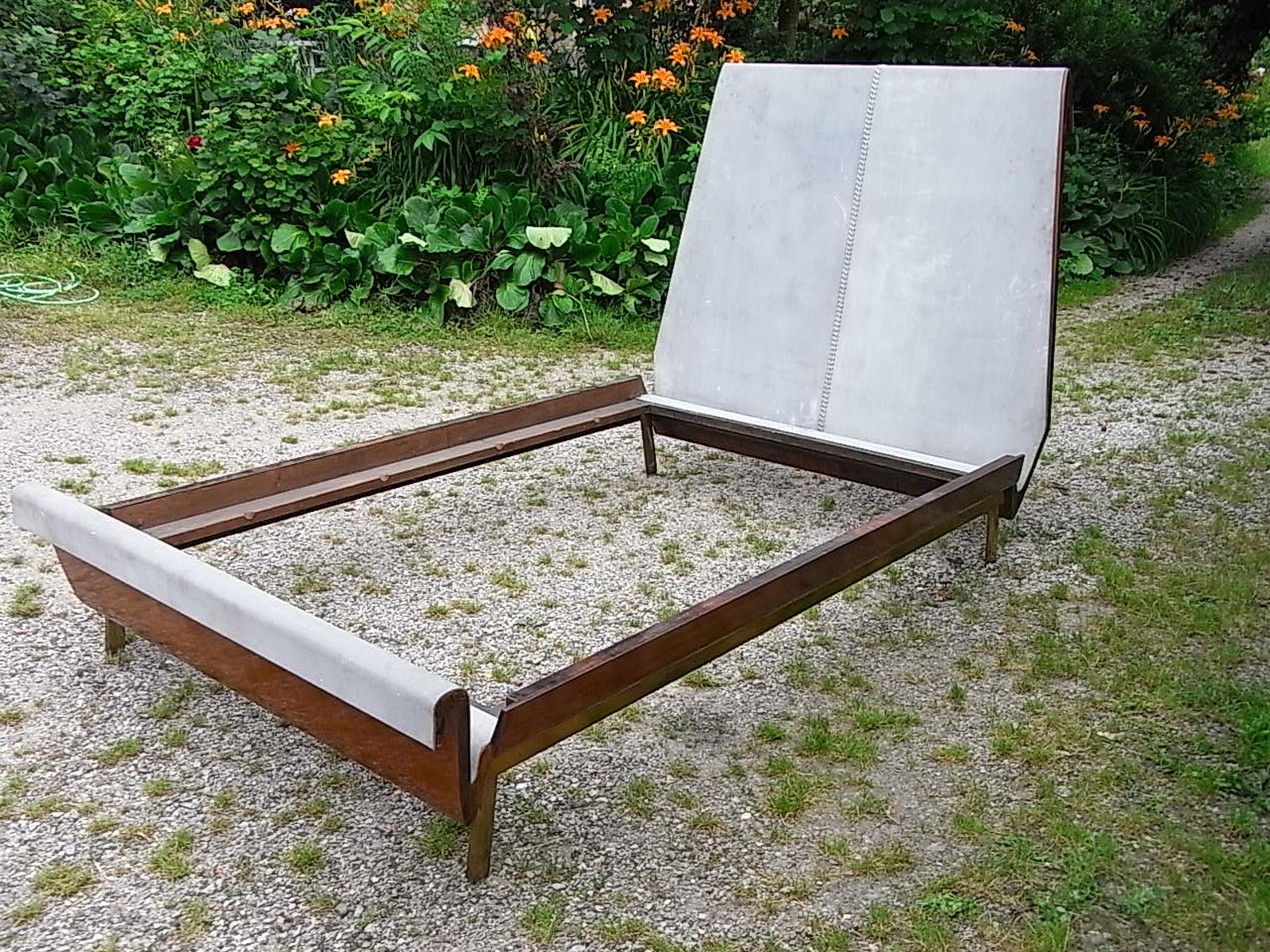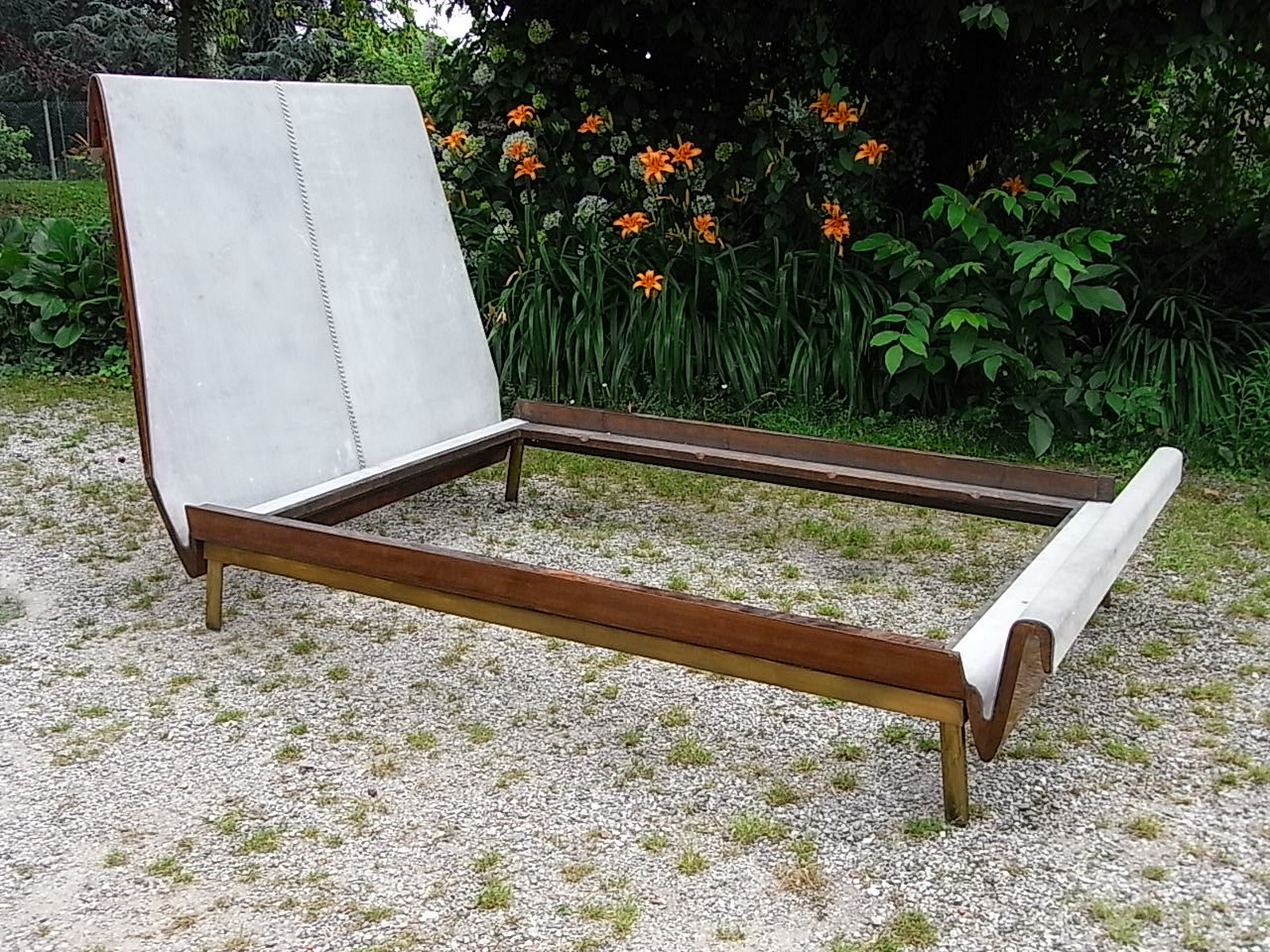 Letto. Legno di noce, pelle e ottone. Cm 240,00 x 135,00 x 118,00. Importante...