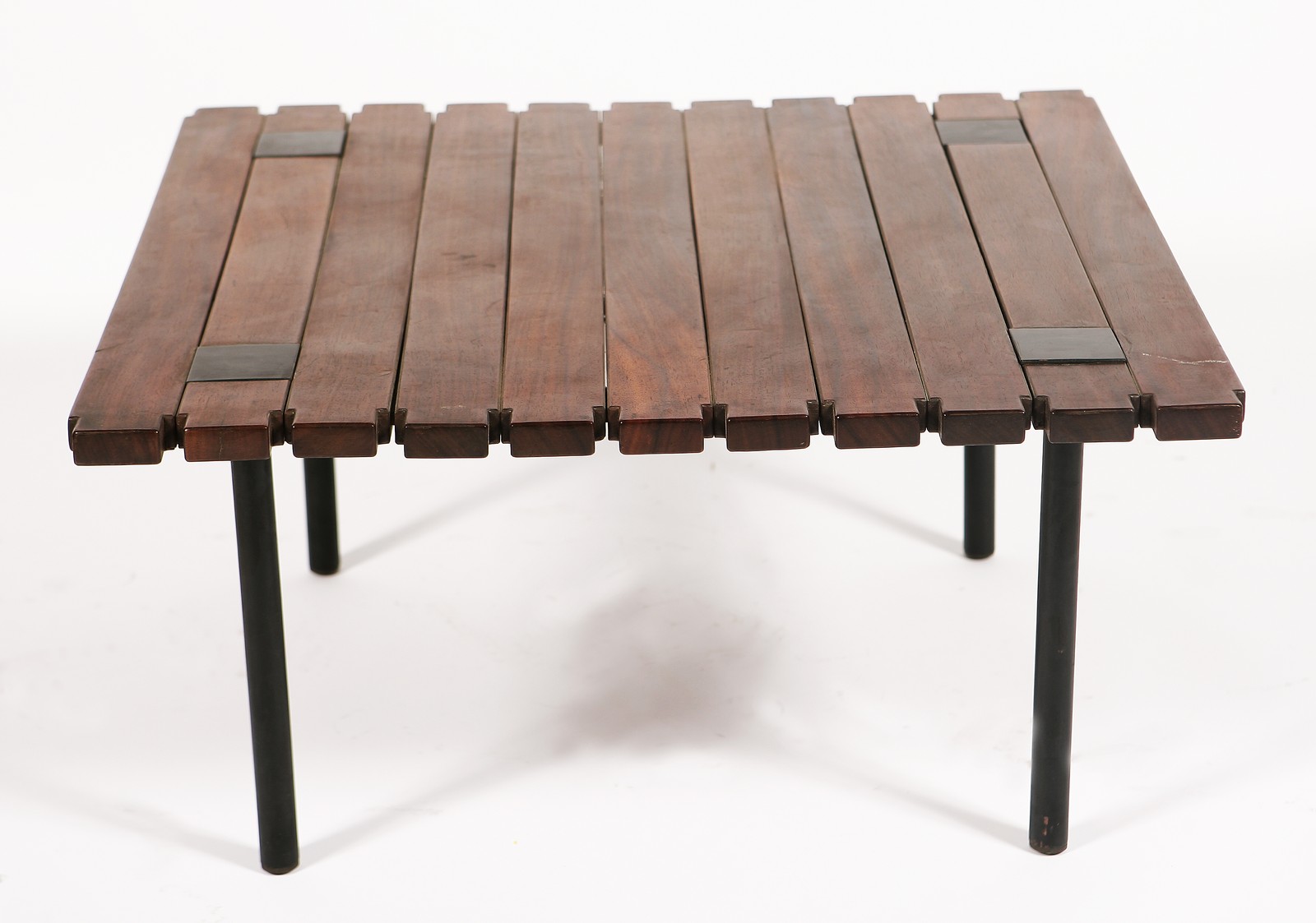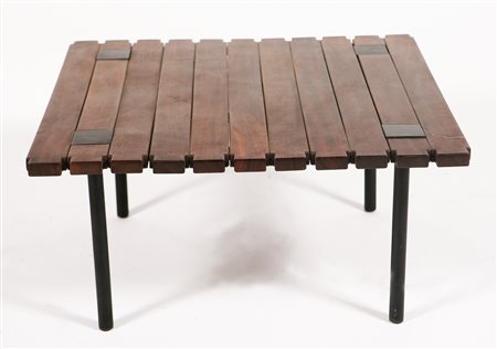 SOTTSASS ETTORE (1917 - 2007) Tavolino. Legno e metallo. Cm 77,00 x 38,00 x 77,00. Prodotto per Poltronova. Anni '60.