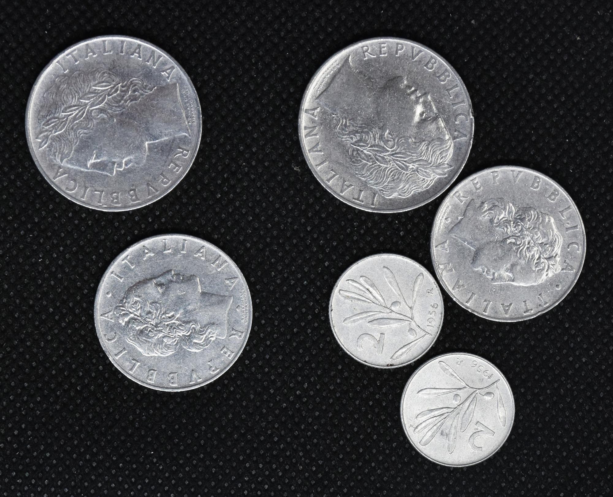 LOTTO DI 6 MONETE REPUBBLICA ITALIANA - 2 lire 1956 - 2 lire 1956 - 50 lire...