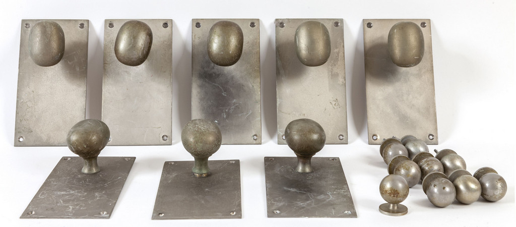 Otto maniglie 'M 3' e nove pomoli per mobili o cassetti anni '50.
