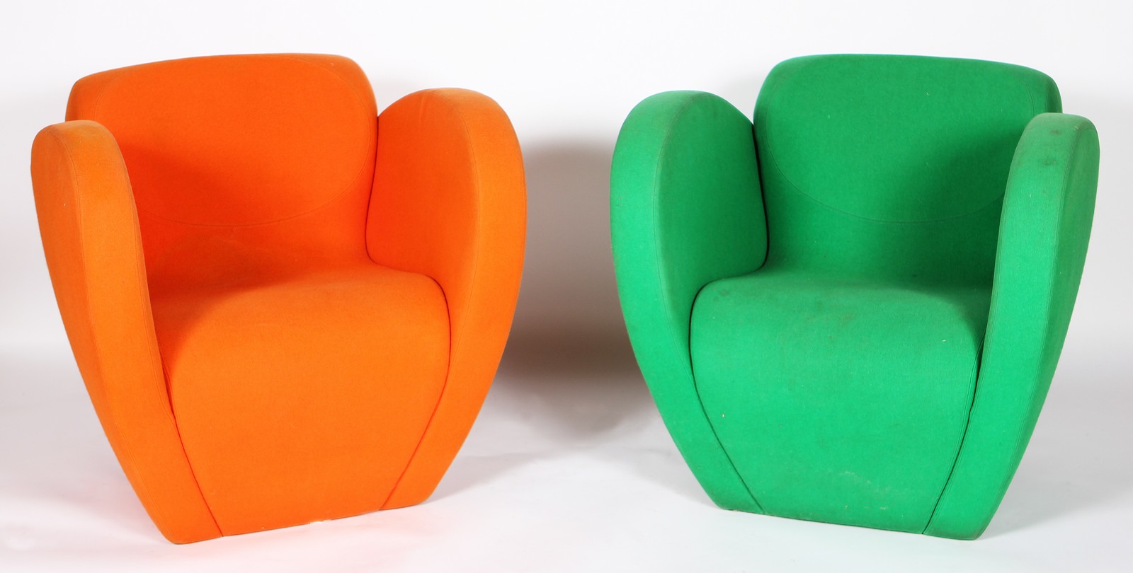 ARAD RON (n. 1951) Coppia di poltrone. Tessuto. Cm 76,00 x 74,00 x 74,00. Anni '90.