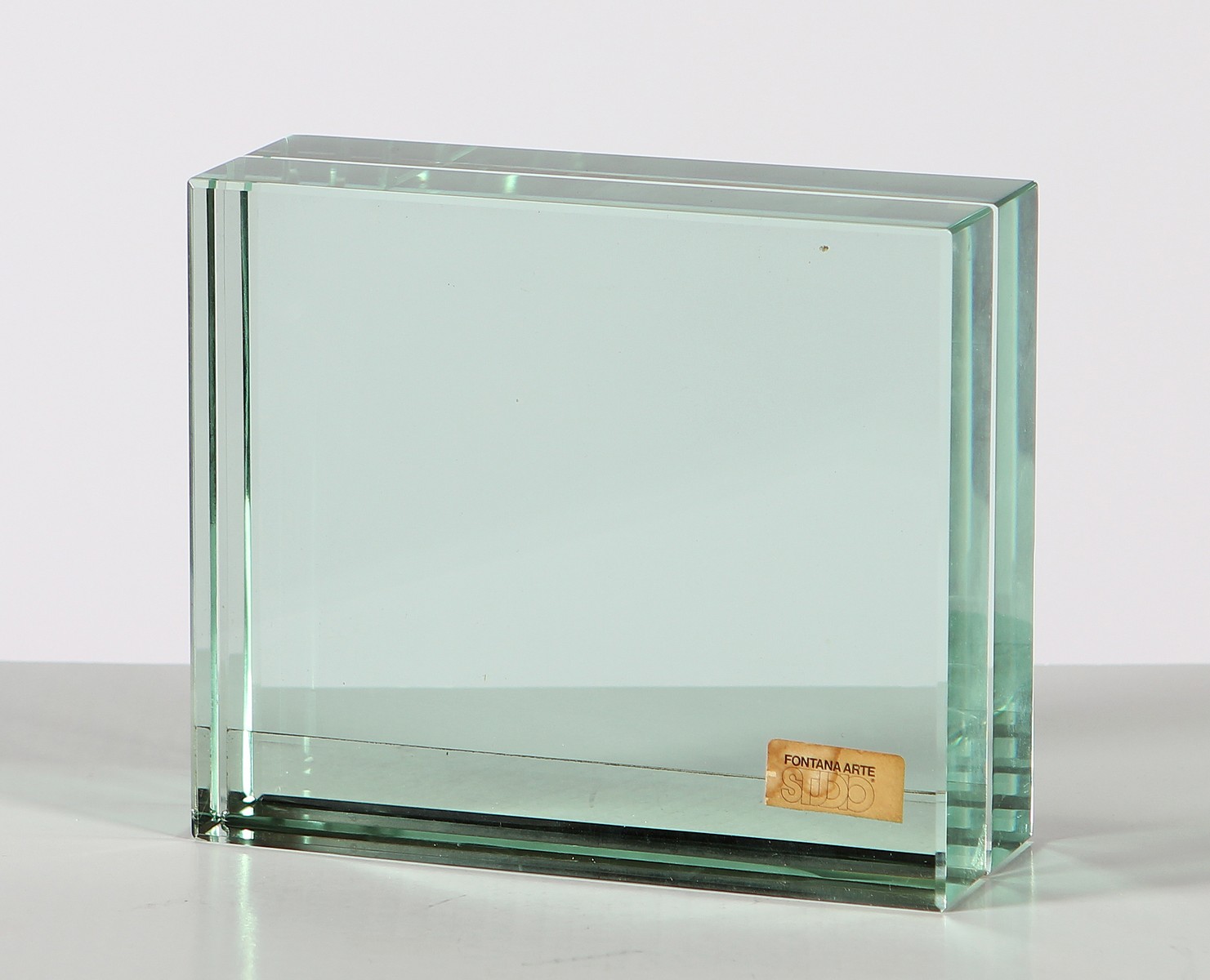 FONTANA ARTE Portafoto. Cristallo. Cm 18,00 x 15,50 x 6,50. Anni '60. Adesivo Fontana Arte Studio.
