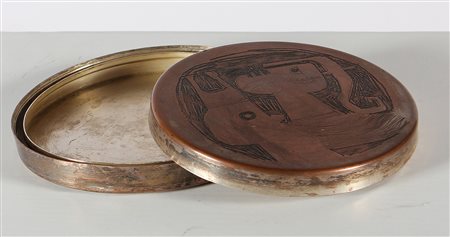 BURCHIELLARO LORENZO (n. 1933) Scatola con coperchio. Metallo. Cm 21,00 x 3,50. Firma incisa sotto la base.