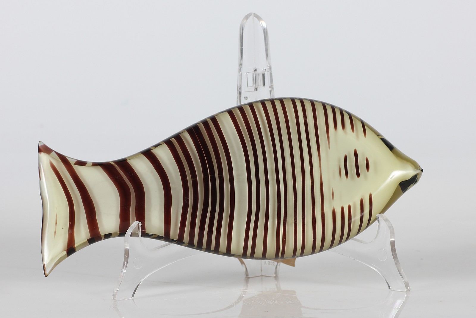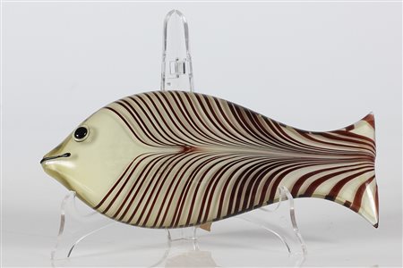 SCOTT KEN (1918 - 1991) Pesce in vetro sommerso color te' a cannette nere e...