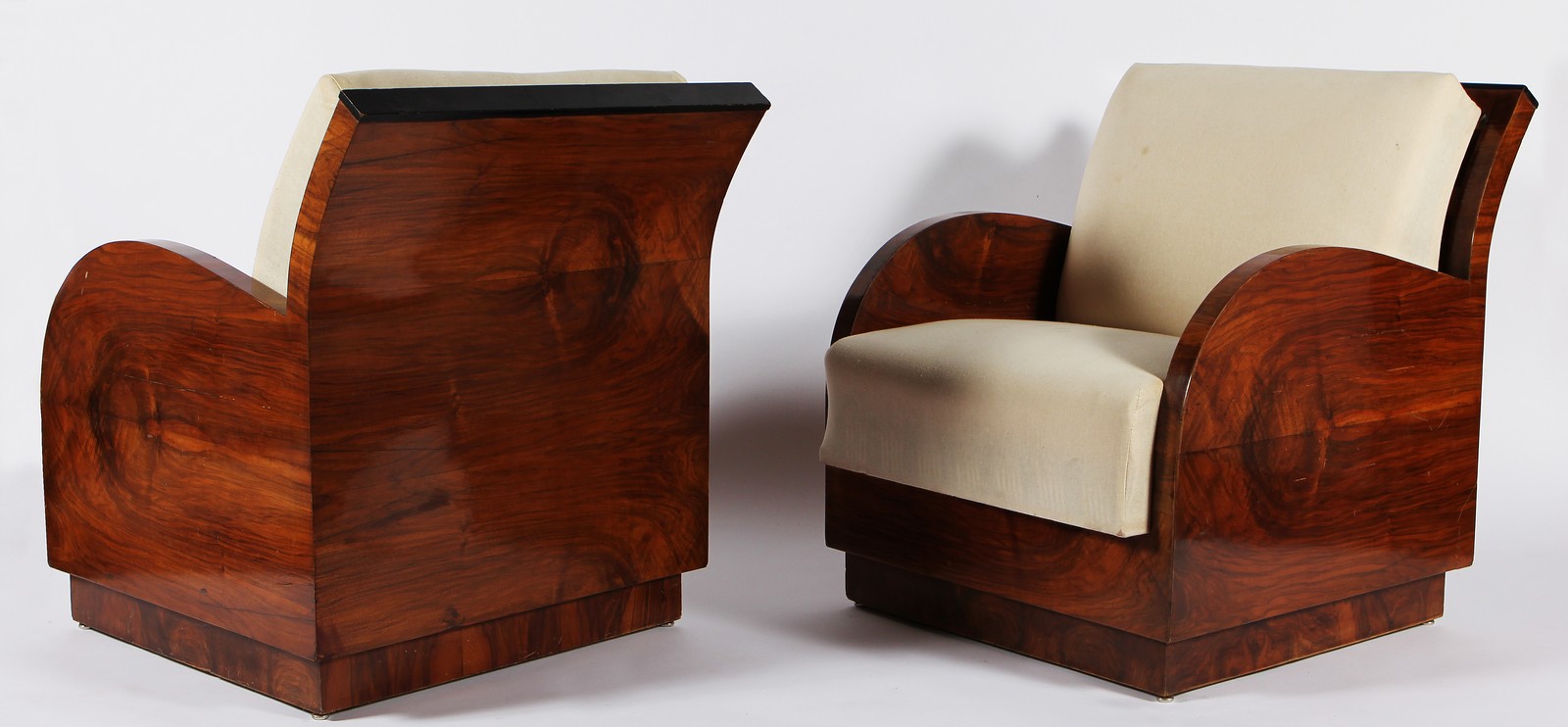 MANIFATTURA ITALIANA DEL XX SECOLO Coppia di poltrone Art Deco'. Noce...