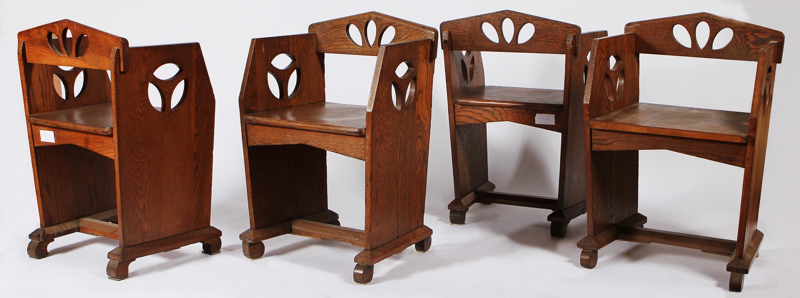 WYBURD LEONARD FRANCIS (1865 - 1960) Quattro poltroncine in rovere. Legno. Cm 52,00 x 78,00 x 40,00. Anni '10.