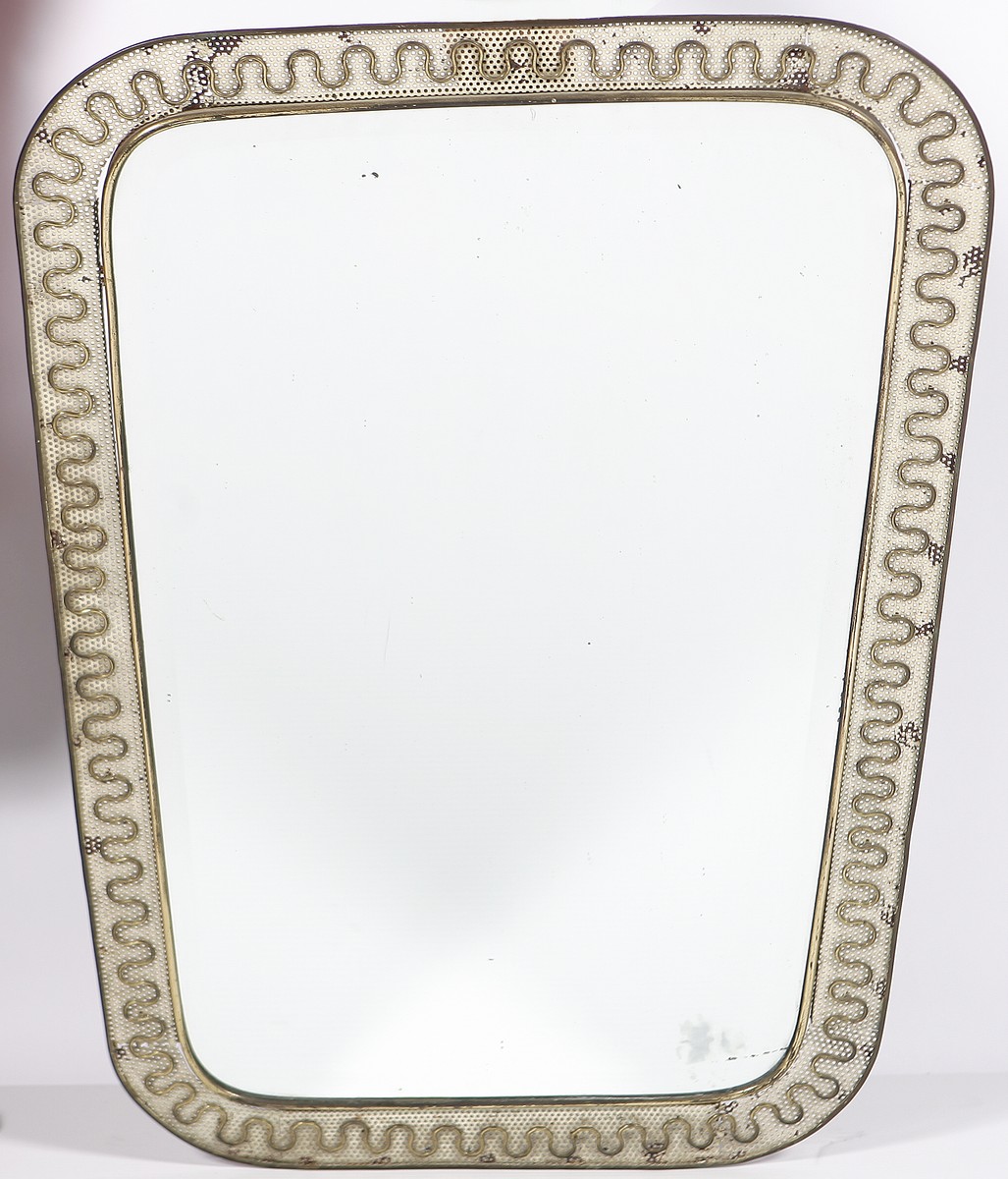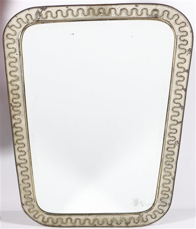 MANIFATTURA ITALIANA DEL XX SECOLO Specchio. Ottone ferro e specchio. Cm 92,00 x 64,00. Anni '50. Cornice in ottone e ferro traforato.