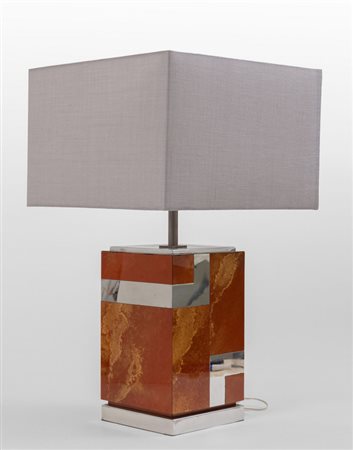 Legno rivestito in laminato ottone cromato paralume di tessutoplastificato.