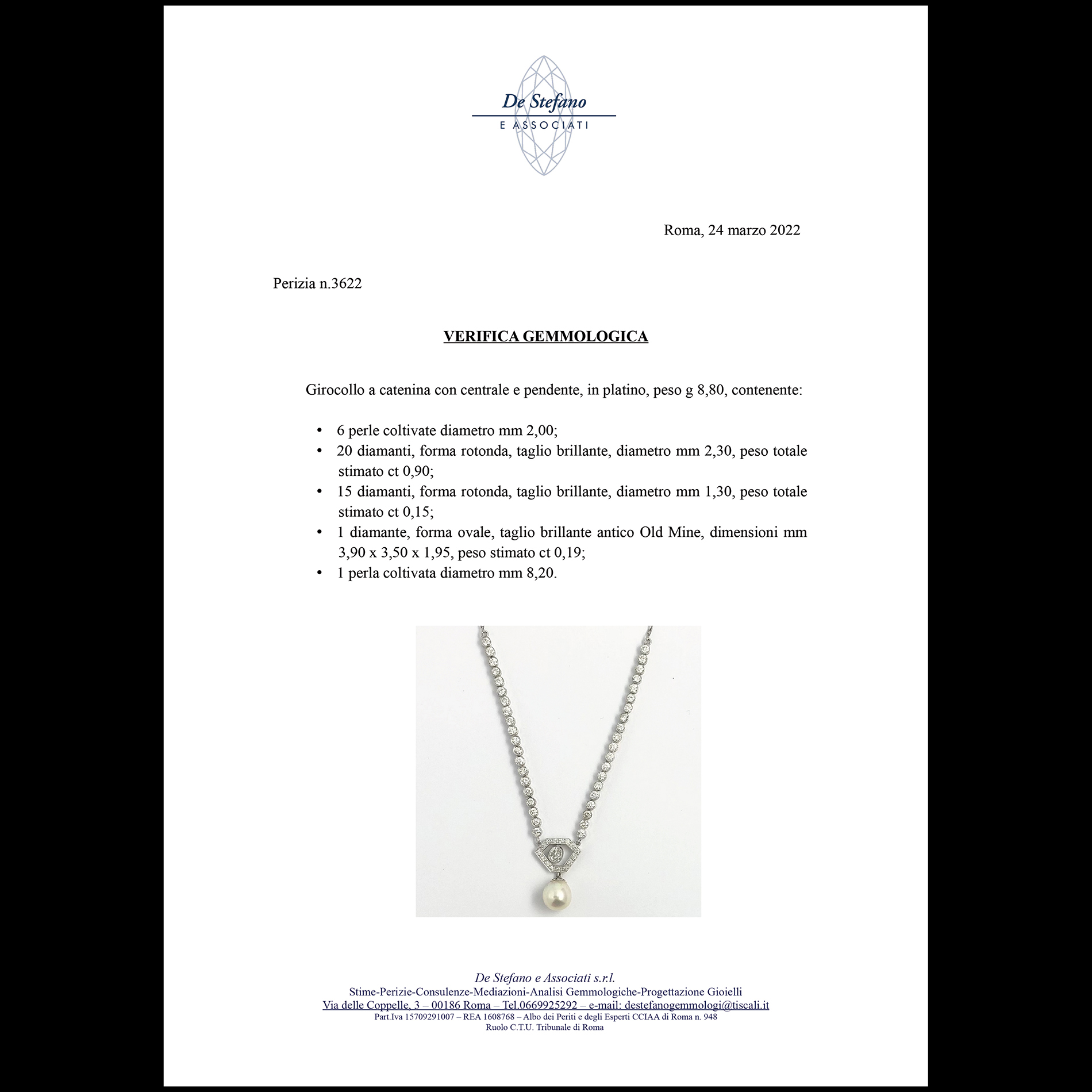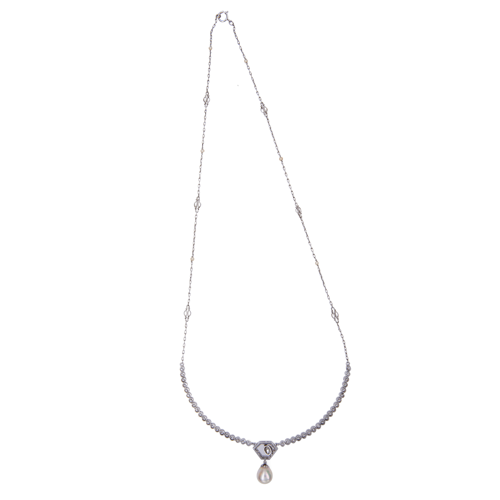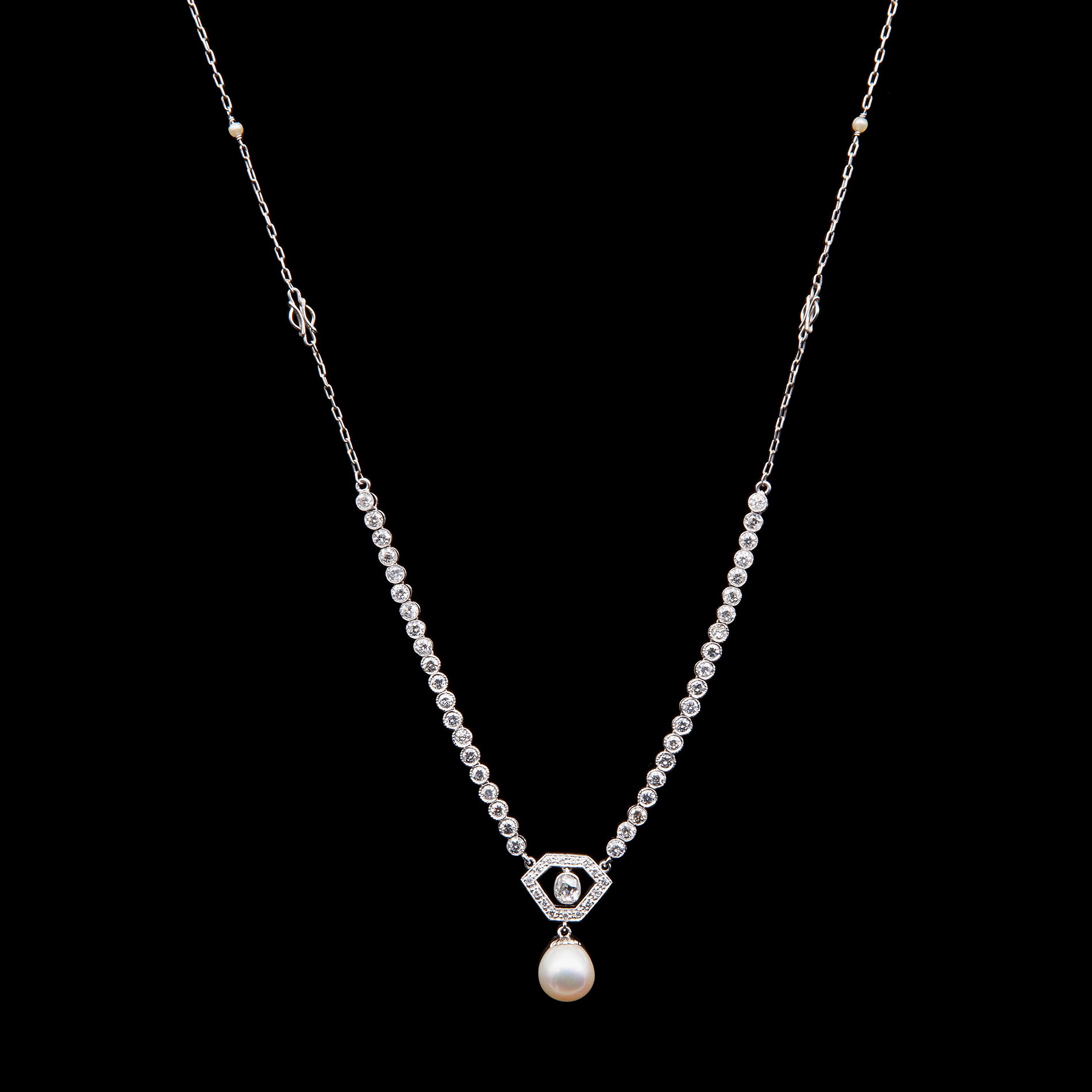 Girocollo con pendente in platino, perle e diamanti