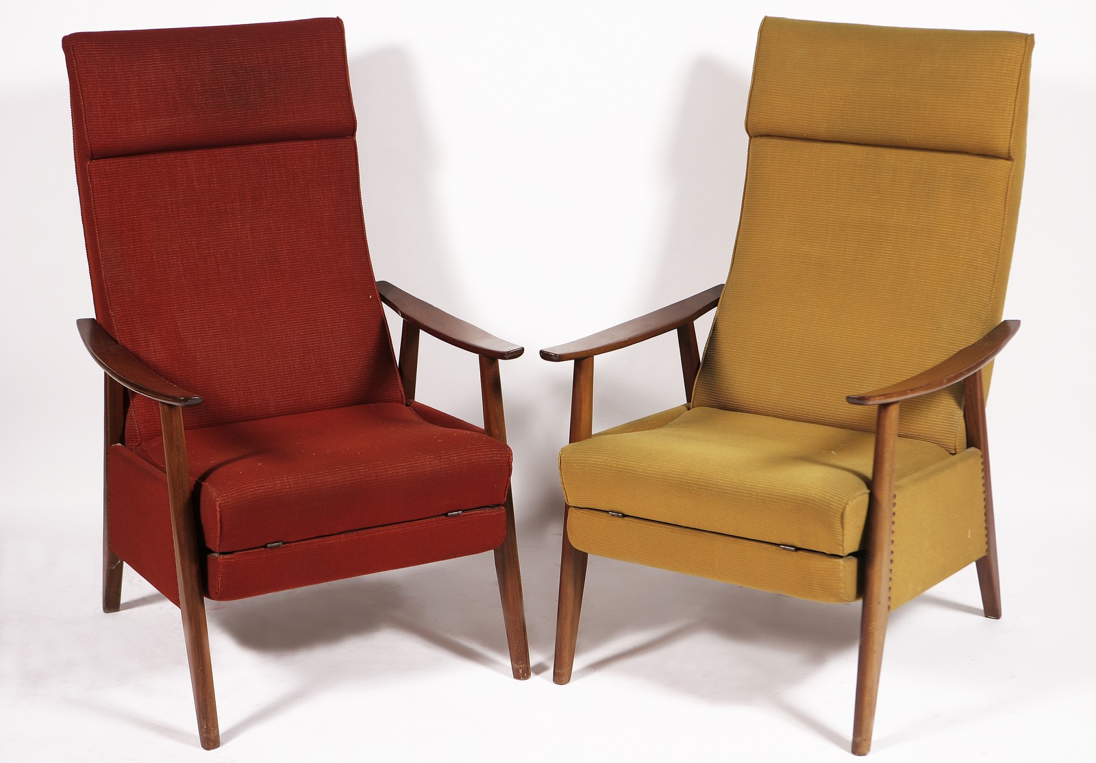 BAUGHMAN MILO (1923 - 2003) Coppia di poltrone. 1959. Legno di teak e tessuto. Cm 80,00 x 108,00 x 64,00. Prodotto per Thayer Coggin. Dimensioni in posizione sdraio130x92x64 cm.