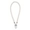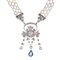 Antica collana lunga in microperle infilate a cui è appesa una spilla in oro, argento e diamanti con tre pendenti