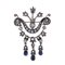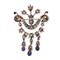 Antica spilla in oro bianco e argento a tre pendenti con zaffiri