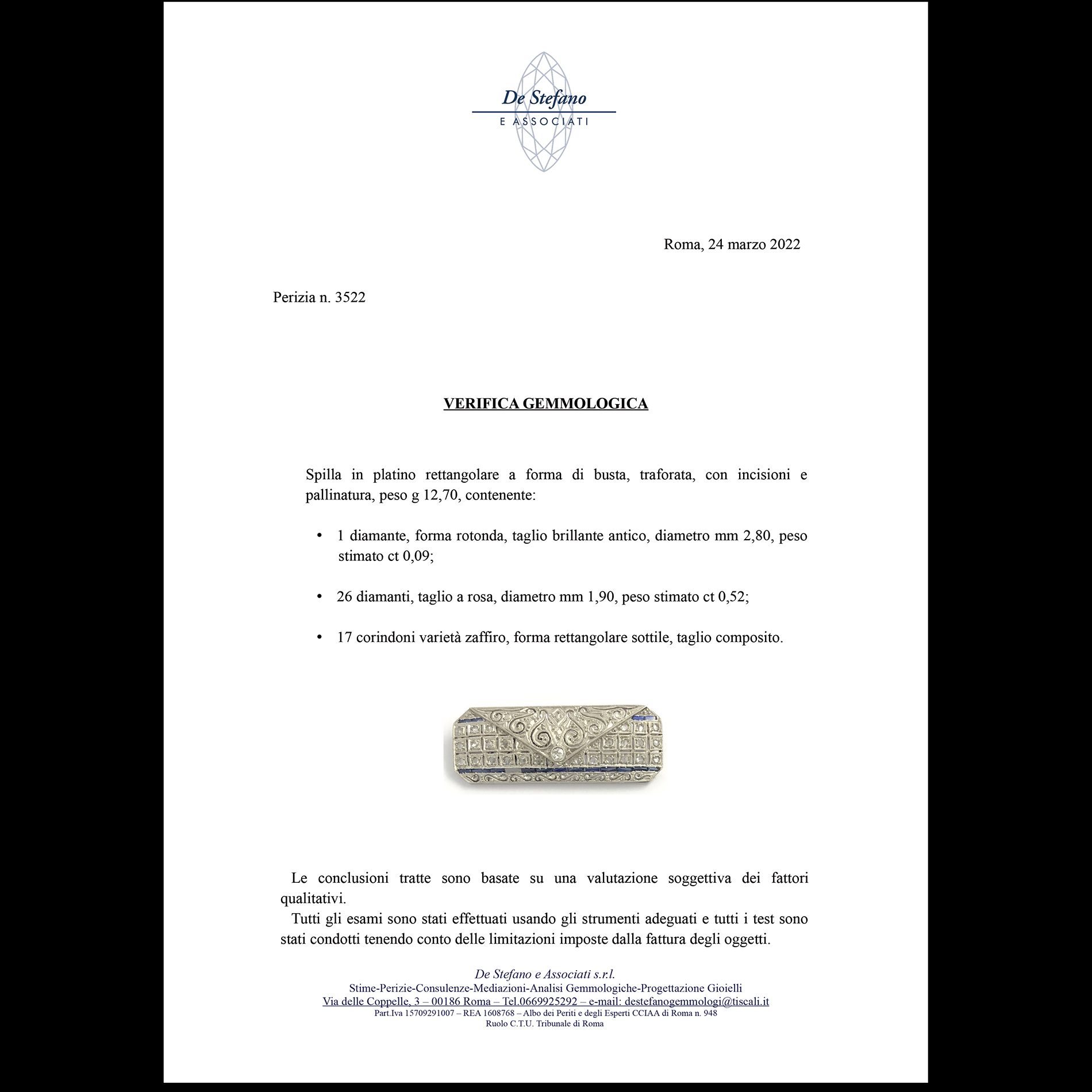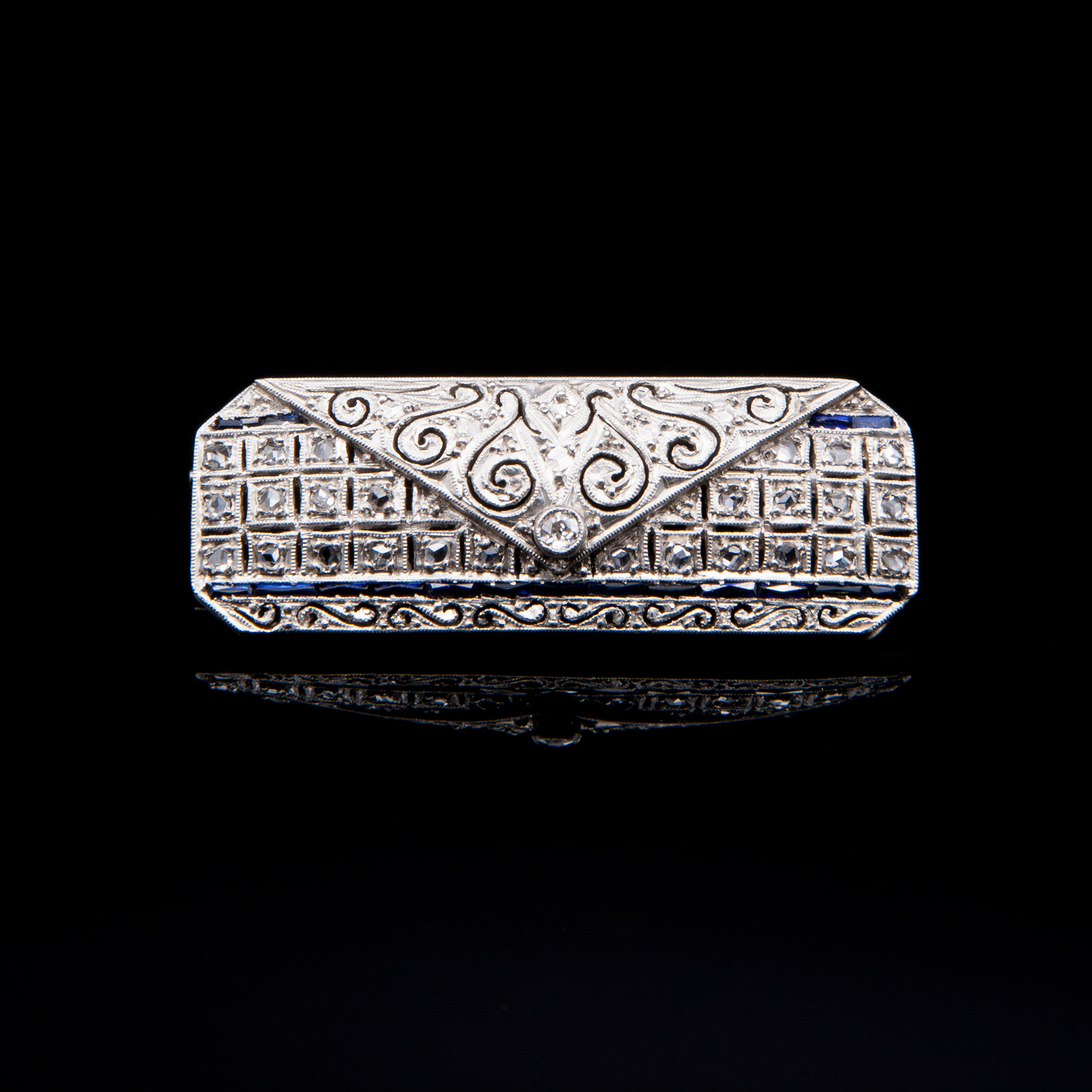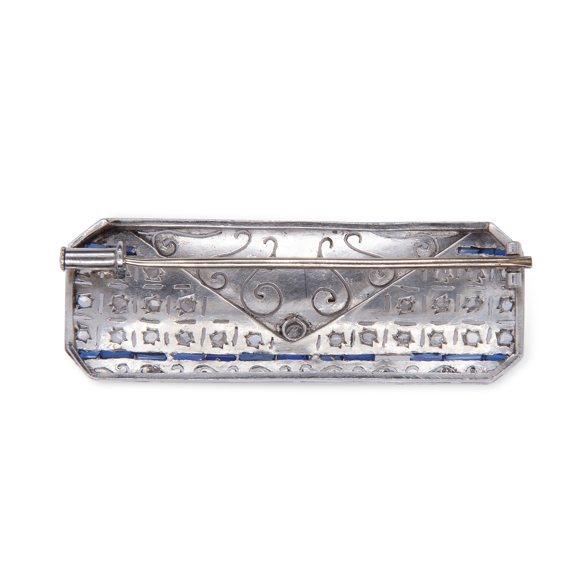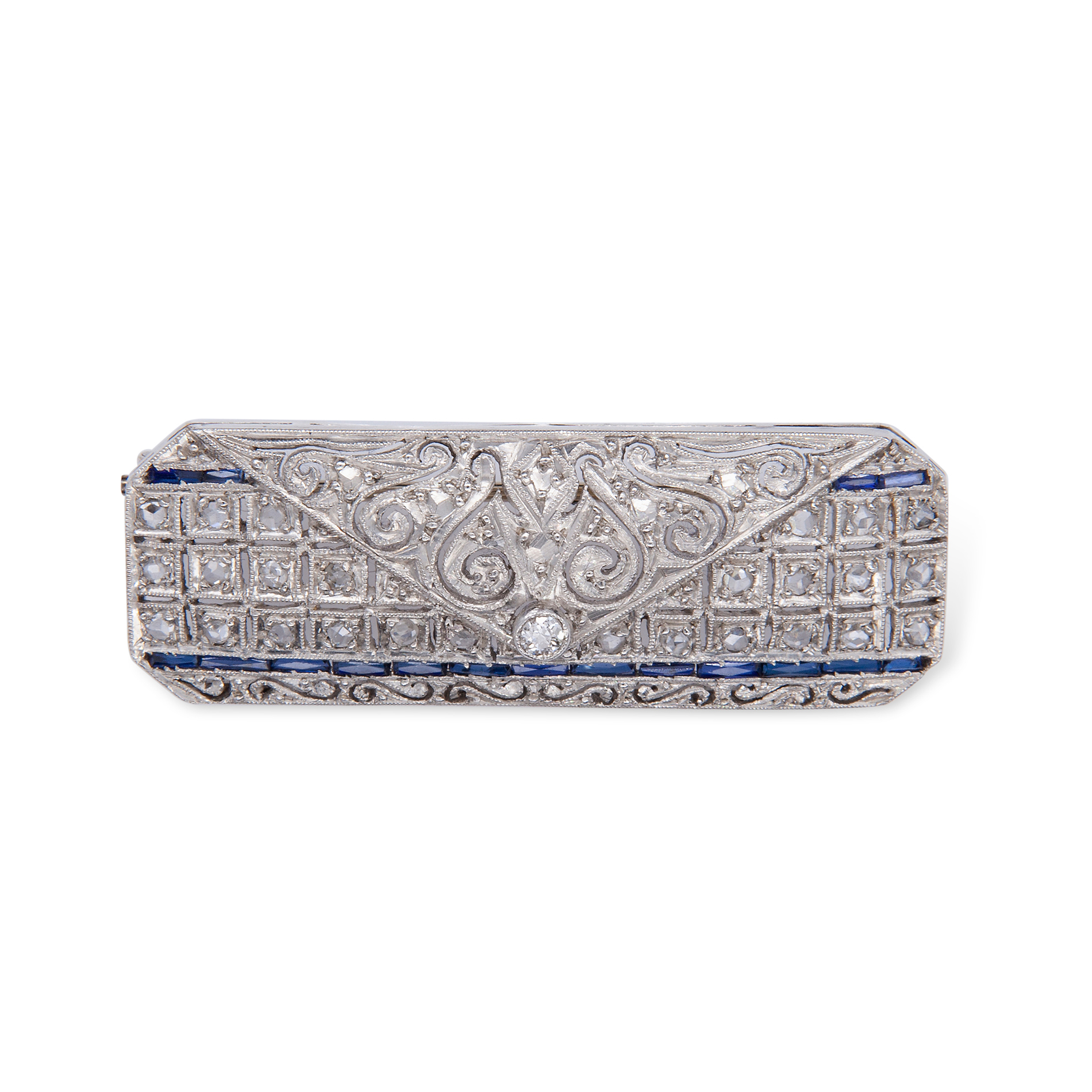 Lotto 28 | Spilla in platino, diamanti e zaffiri