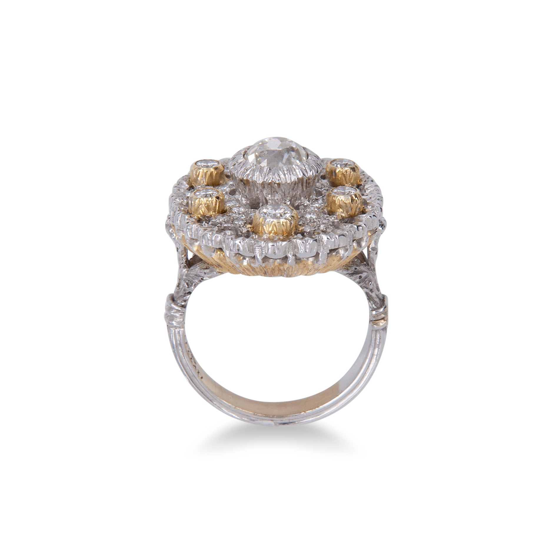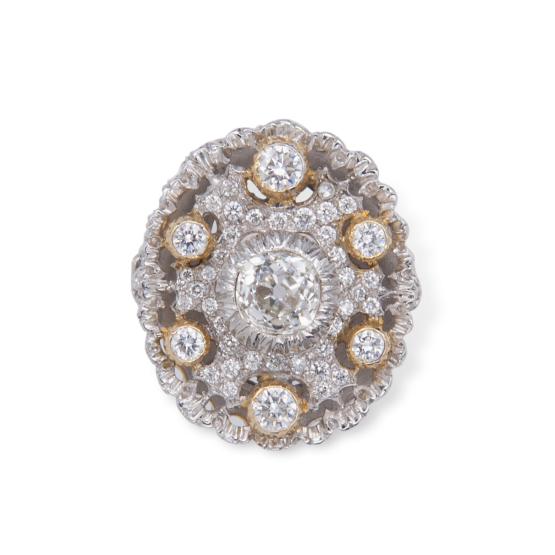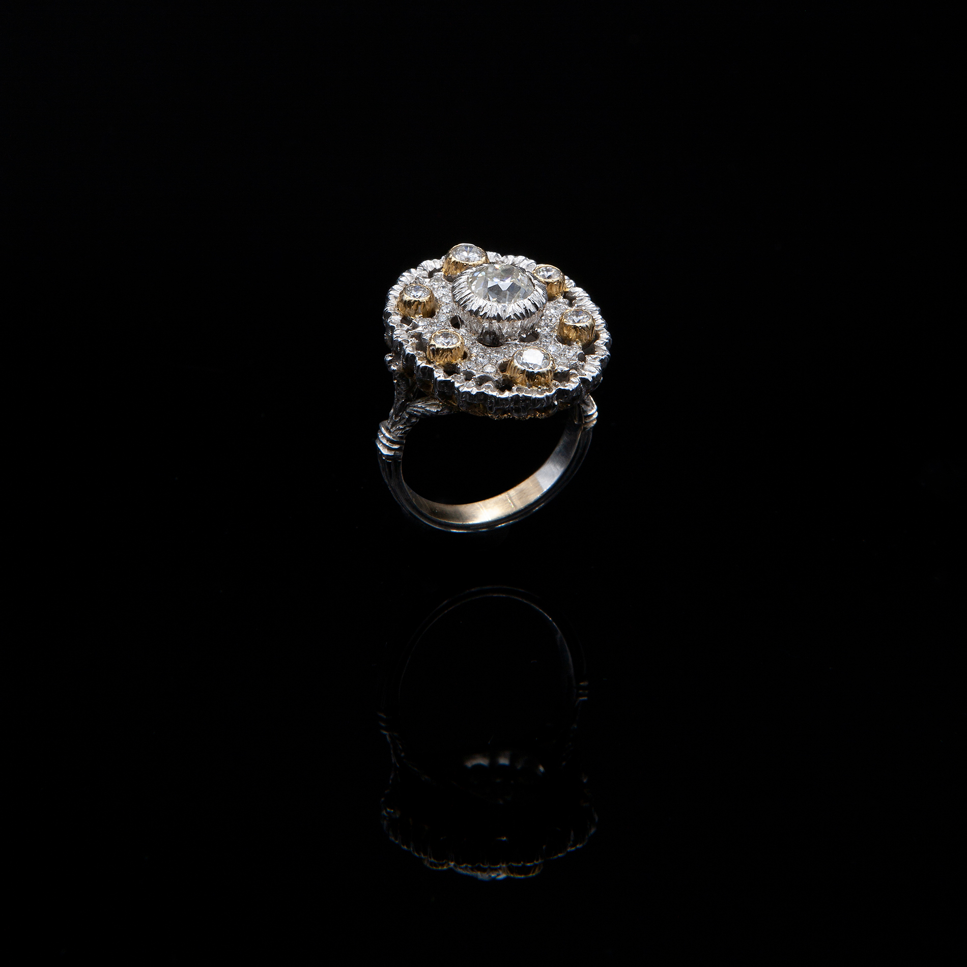 Anello in oro bianco e diamanti Oro bianco 18 kt, diamanti rotondi taglio vecchio e brillante per un peso stimato totale di 1 ct circa
