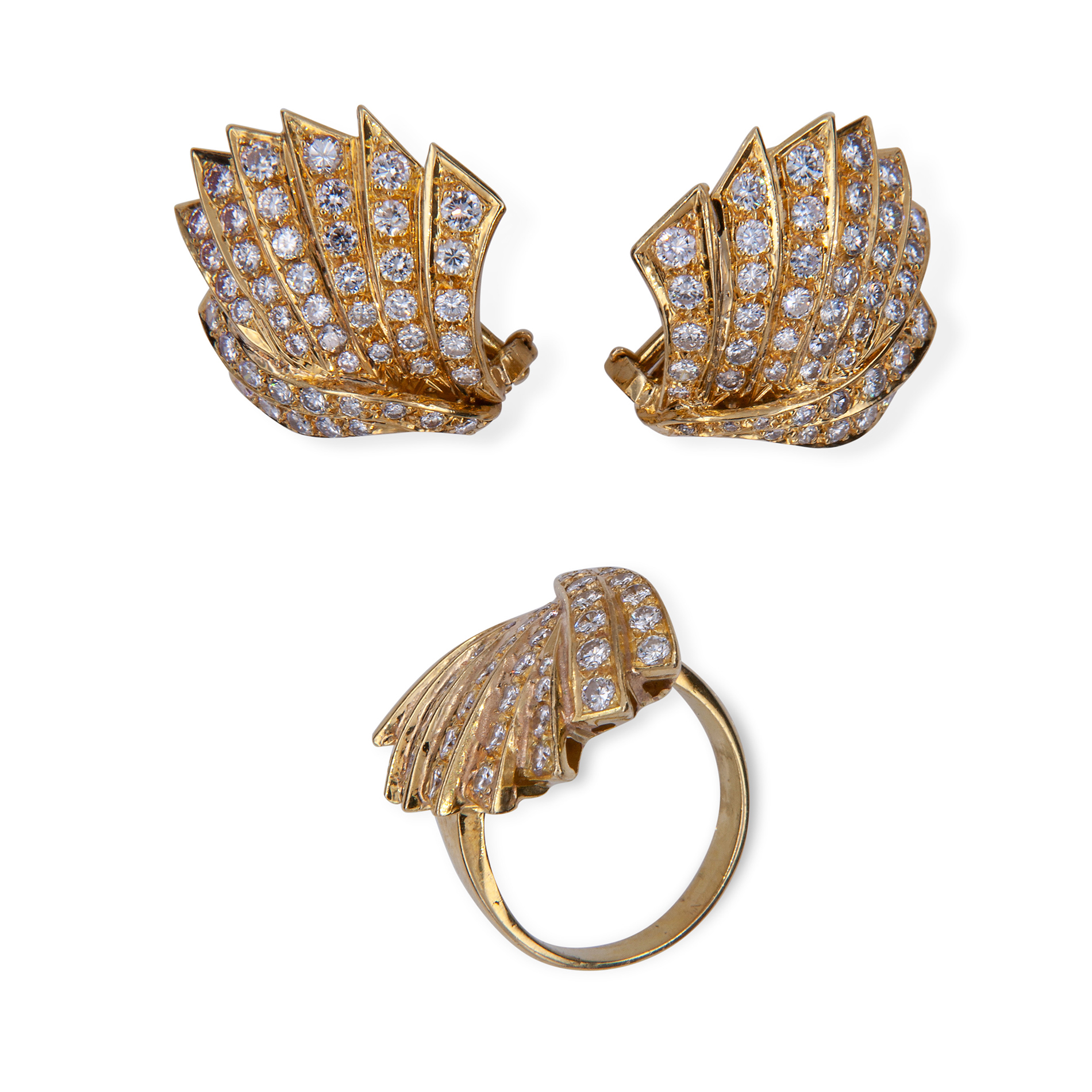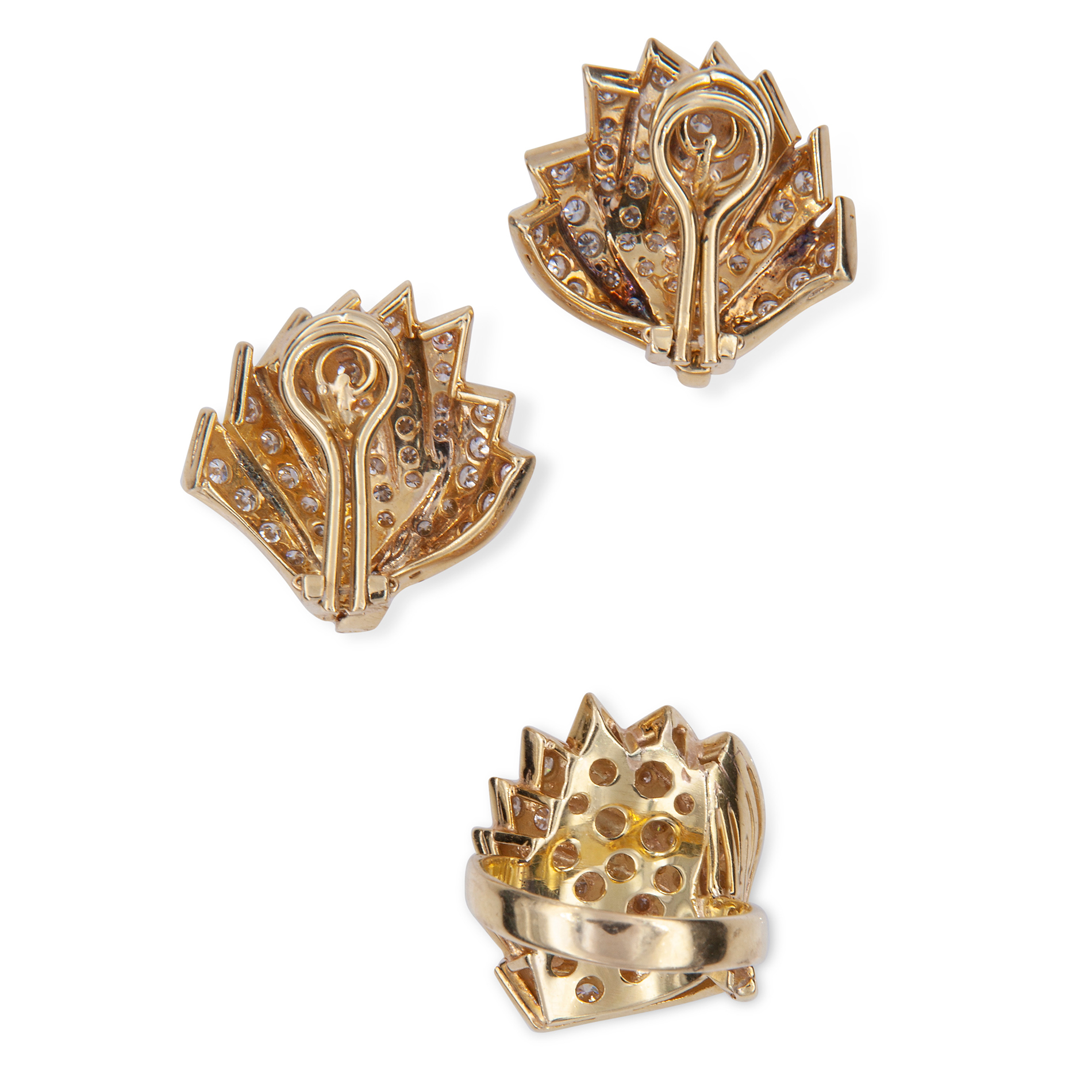 Parure anello e orecchini in oro giallo e diamanti
