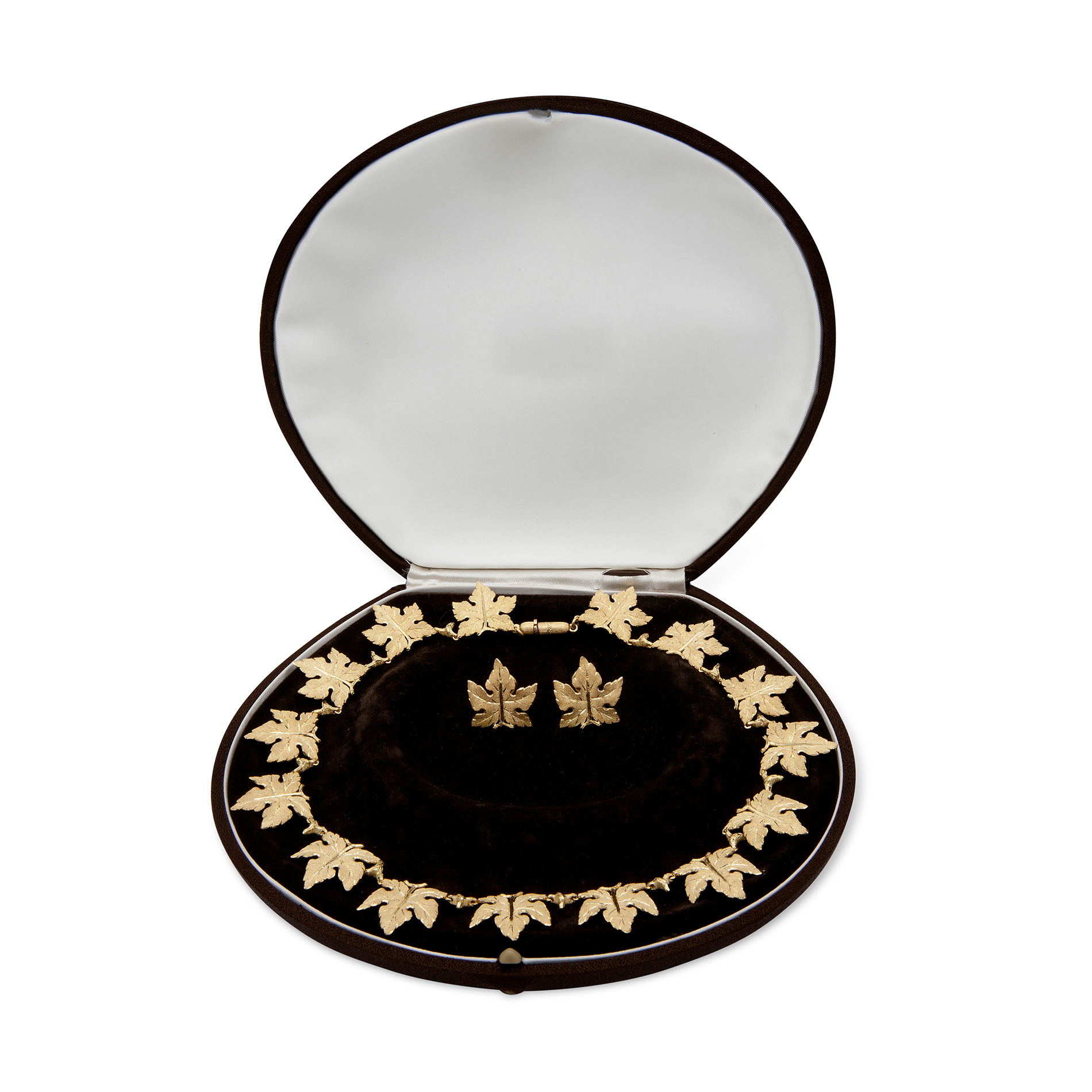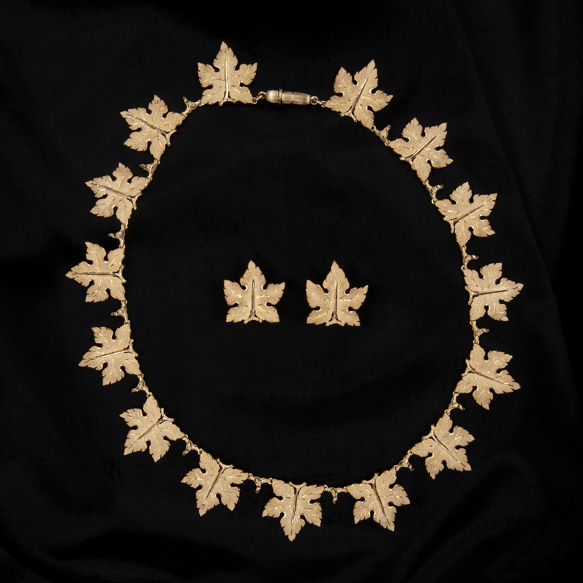 Demi parure Buccellati collezione Foglie Girocollo e orecchini in oro giallo 18 kt, peso complessivo gr. 63,70