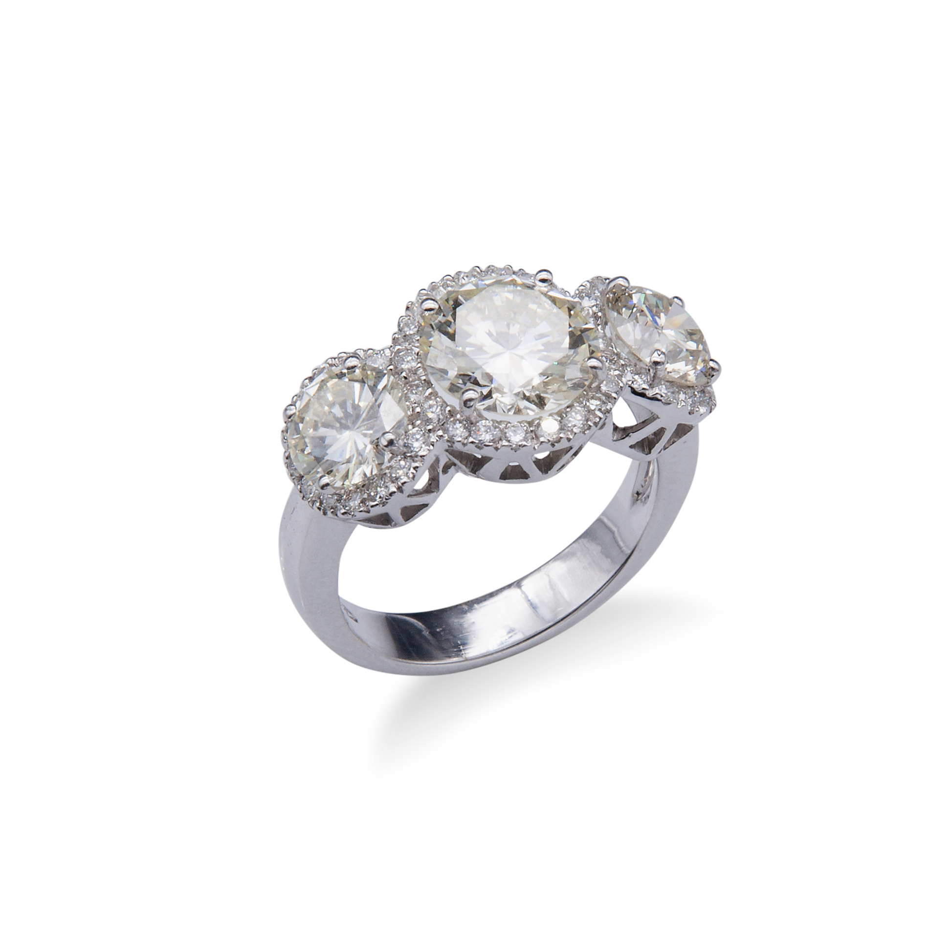 Importante anello Trilogy in oro e diamanti Oro bianco 18 kt, diamanti rotondi taglio brillante per un peso totale di 4,23 ct