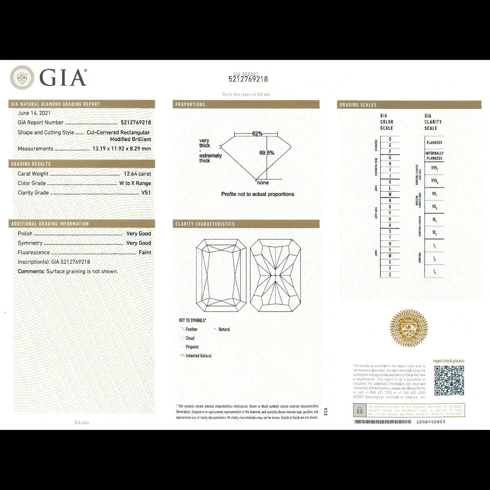 Meraviglioso diamante rettangolare WT0Z Di forma rettangolare ad angoli tagliati, peso stimato 12,64 ct, VS1; certificato GIA