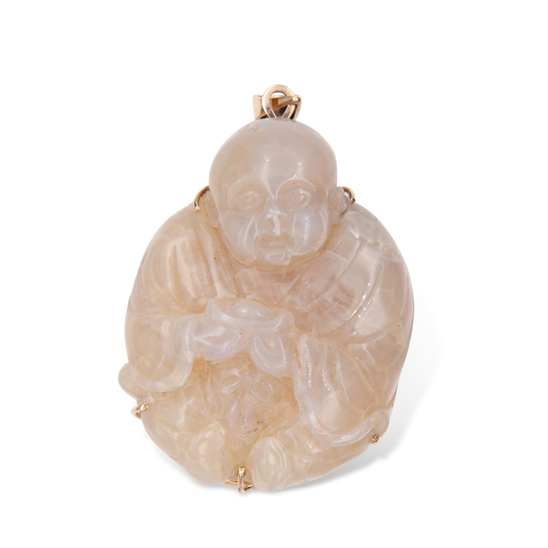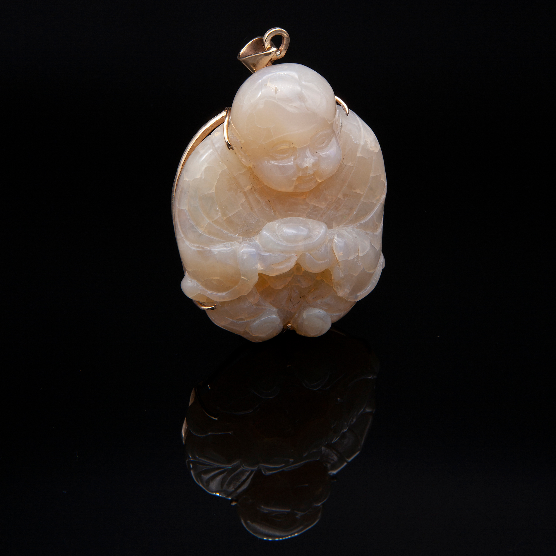 Ciondolo in oro giallo e opale nobile in figura di Buddha