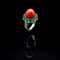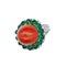 Anello in oro bianco, corallo, diamanti e smeraldo