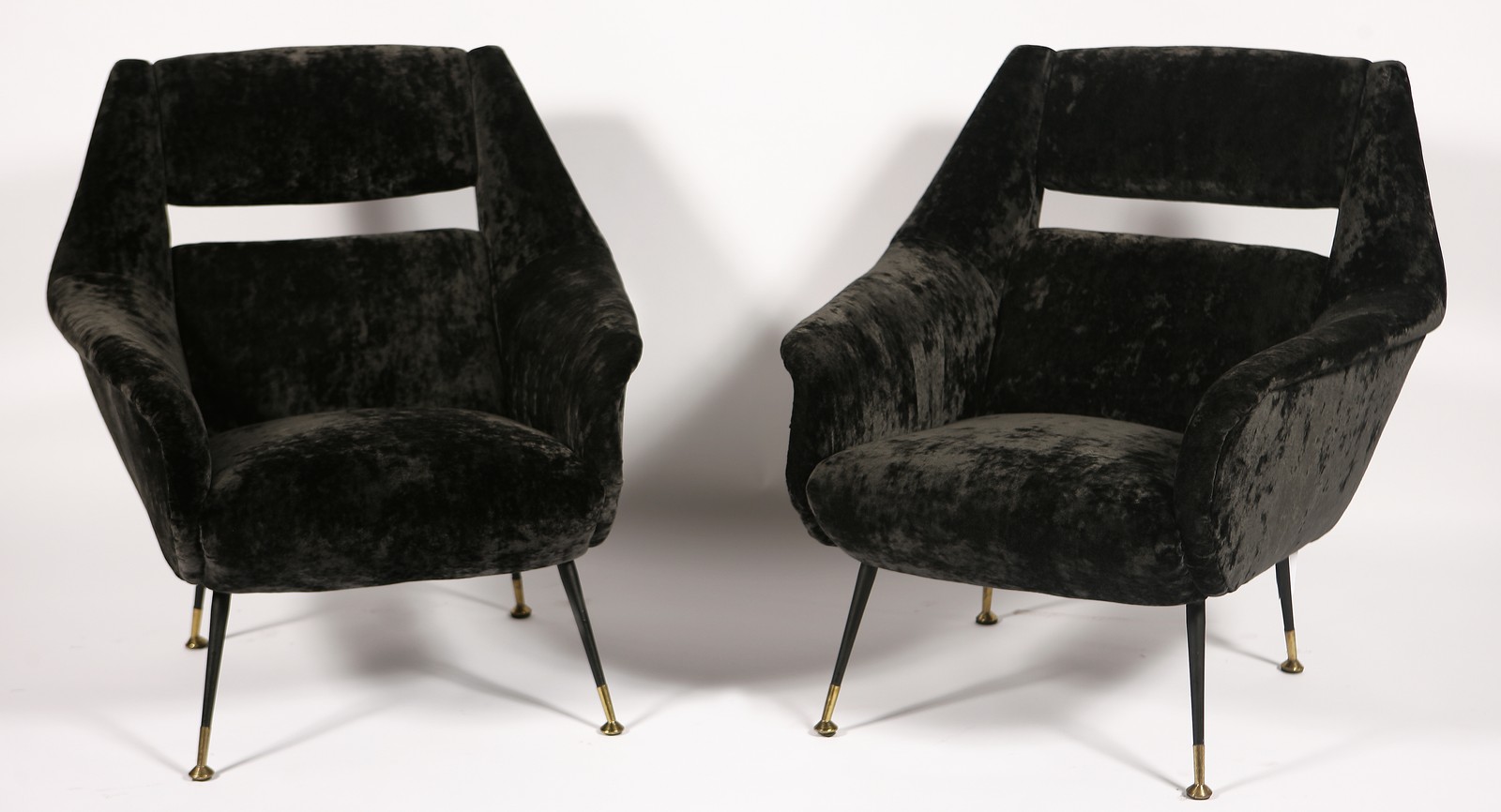 MANIFATTURA ITALIANA DEL XX SECOLO Coppia di poltrone. Metallo e tessuto. Cm...