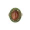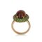Anello in oro giallo, asteria e granati Oro giallo 18 kt, 1 'asteria' ovale taglio cabochon, peso stimato 10 ct, granati rotondi taglio composito, peso totale stimato 1,6 ct. Peso complessivo gr. 12, recante timbro oro 18 kt